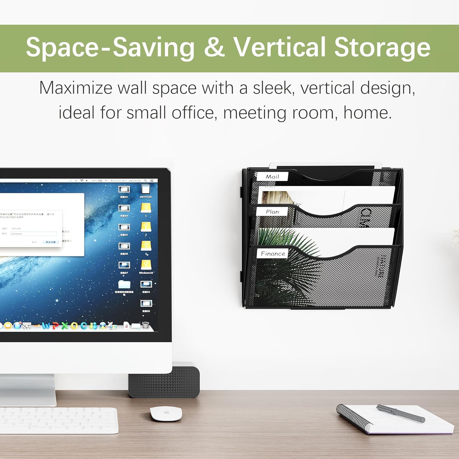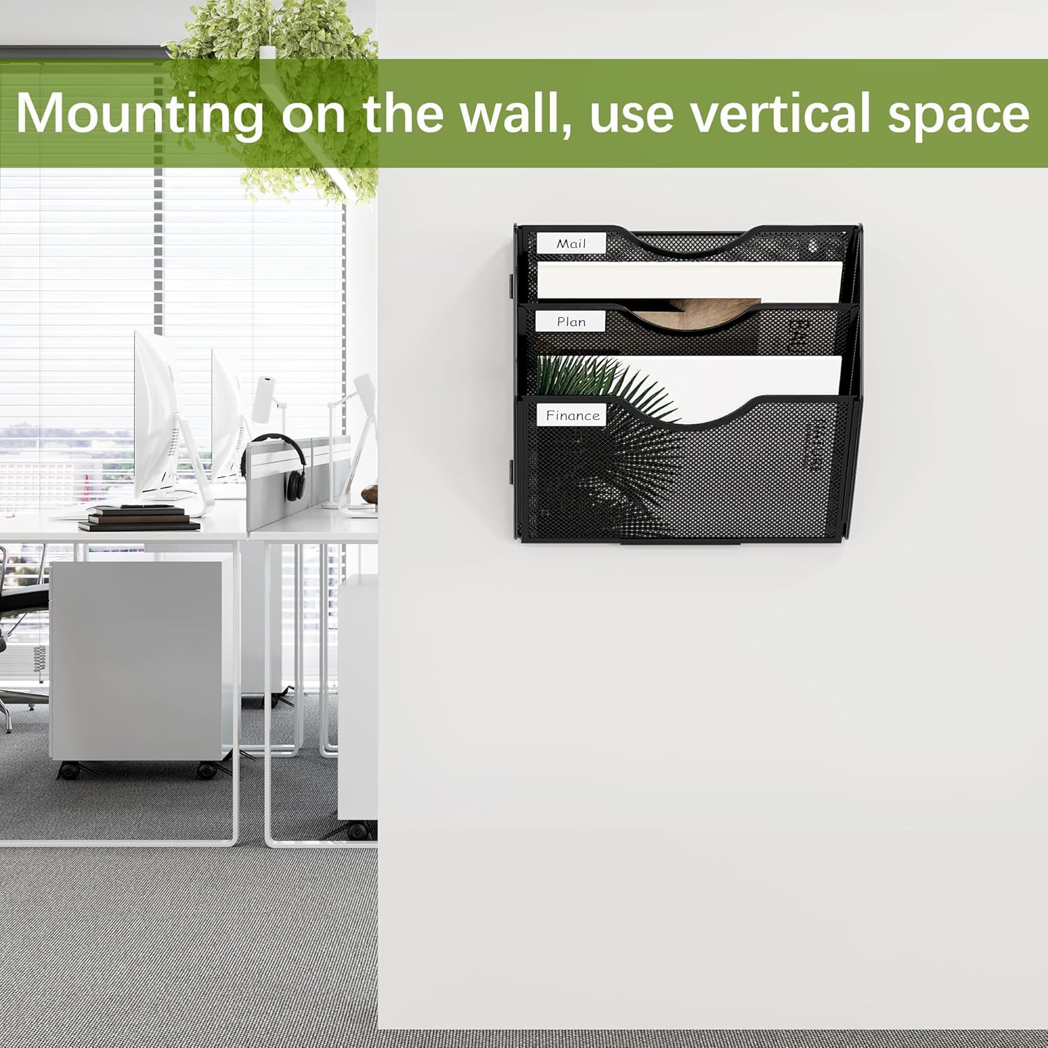 - Space Saving: 3 tier metal wall file organizer comes with mounting screws that can be easily mounted on the wall. Use your home or office space more efficiently by keeping your files organized and off the desk and workspace.