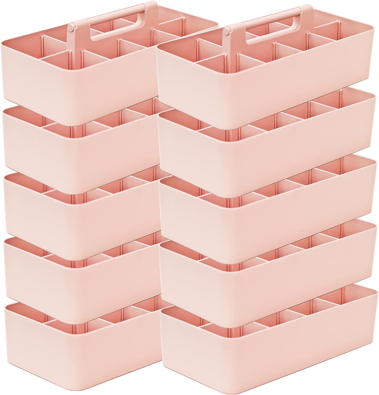 -Large Portable Caddy, DIY Dividers, 8 Compartments, School Office Supplies Home Business Basket with Handle Storage Organizer Made in USA (10 PACK, Indie Pink)