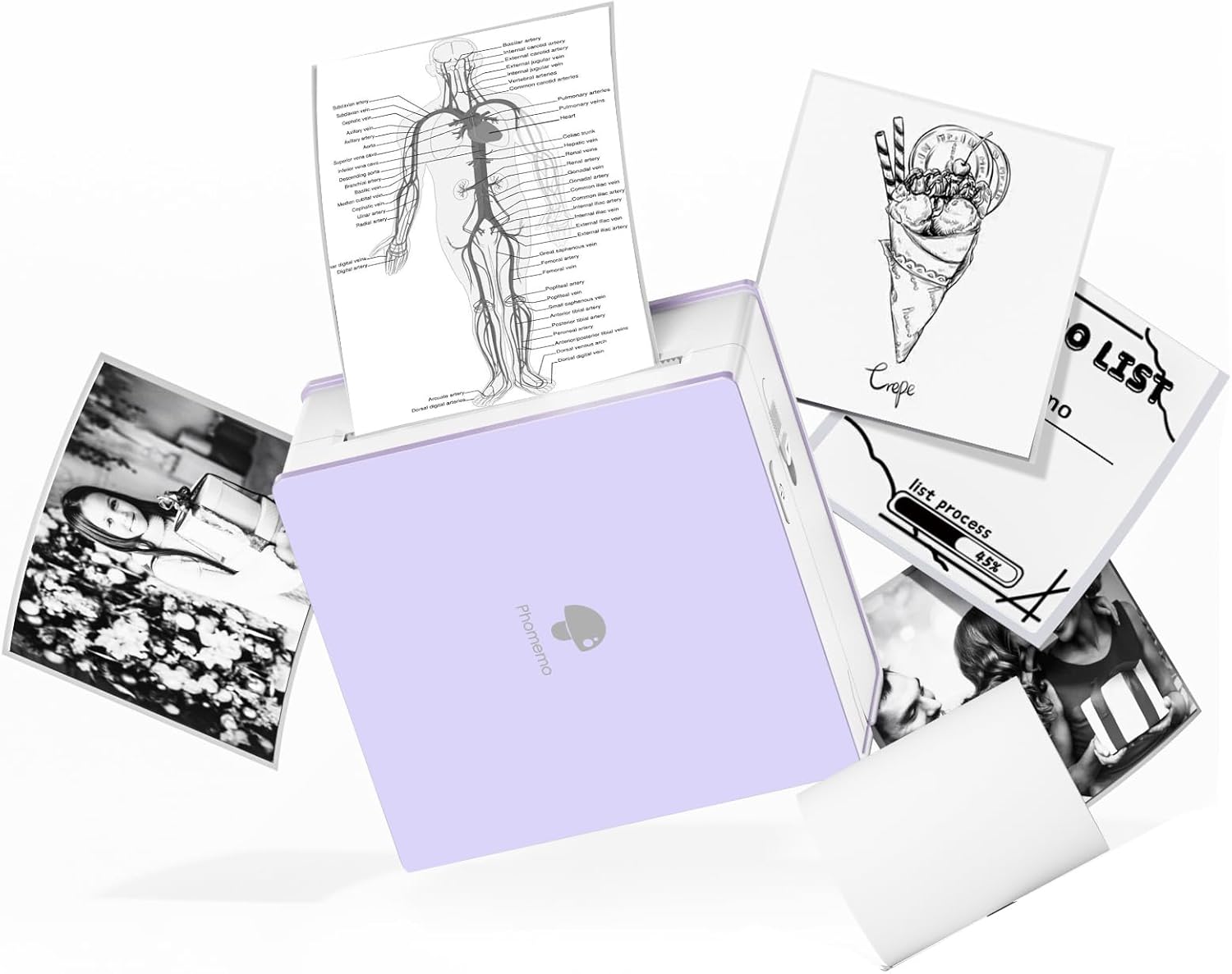 Phomemo Mini Sticker Printer- Mini Printer Sticker Maker Machine M02, Print Pods Suitable for Creative DIY, Diaries, Photos, Study Notes, Portable Thermal Inkless Label Maker for Home/Travel, Purple
