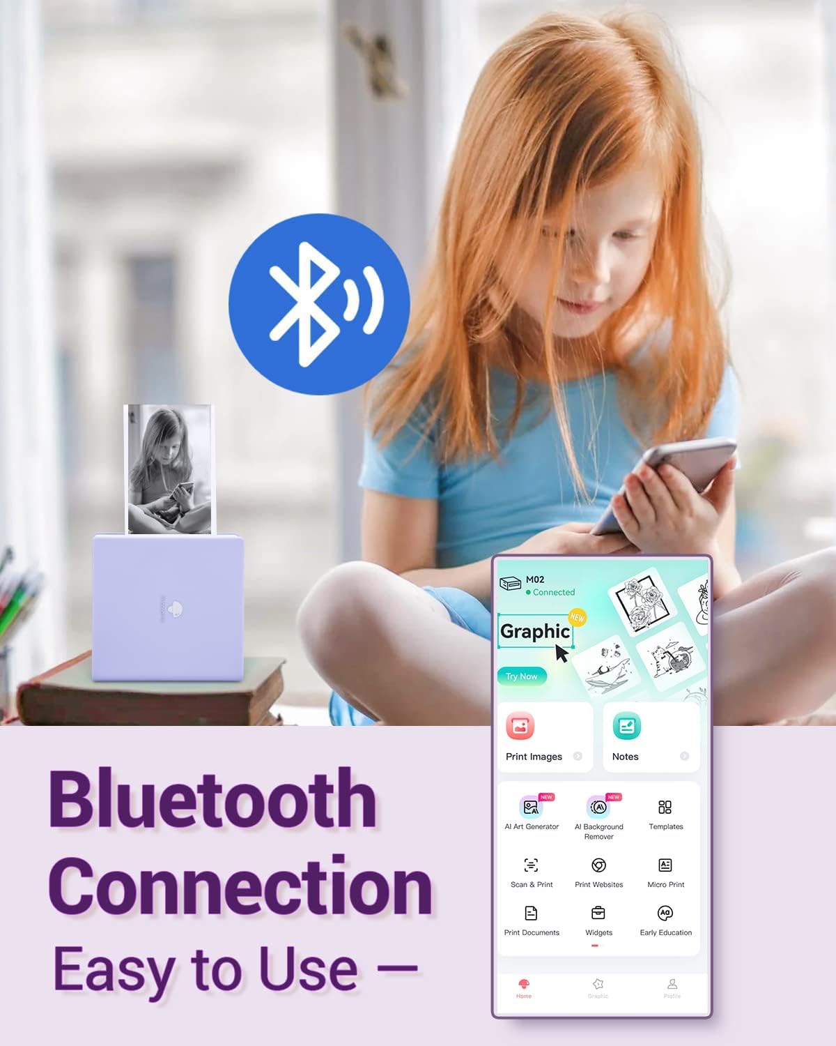 - Bluetooth Thermal Printer- Bluetooth 4.0 connection. System for Android 7.0 and iOS 13.0 or above. Phomemo M02 pocket printer is an inkless printer, you donβt need to buy any ink or toner. Portable mini printer help you save time