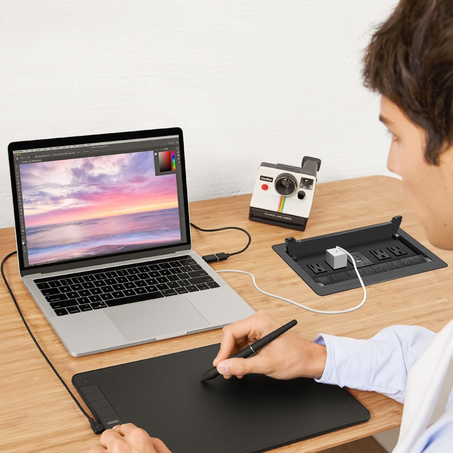 - Product features: space saving- reliable power socket, very suitable for home and office installation. Make your table clean and beautiful. When you use it, open the cover and plug in your laptop power cord or other electrical appliances. Close the cover, level it with the table top, brush it to prevent dust, etc