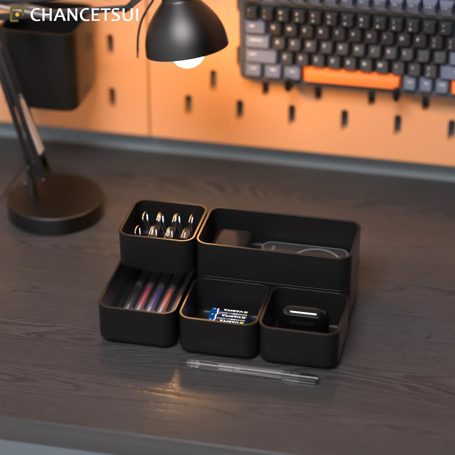 - ăSturdy and Durableă The desk drawer organizer trays set are made of durable and environmental PET plastic, ensuring a long life of use. Drawer organizer bins are break-resistant and could accommodate different items keeping the organiser nice and steadily stacked.