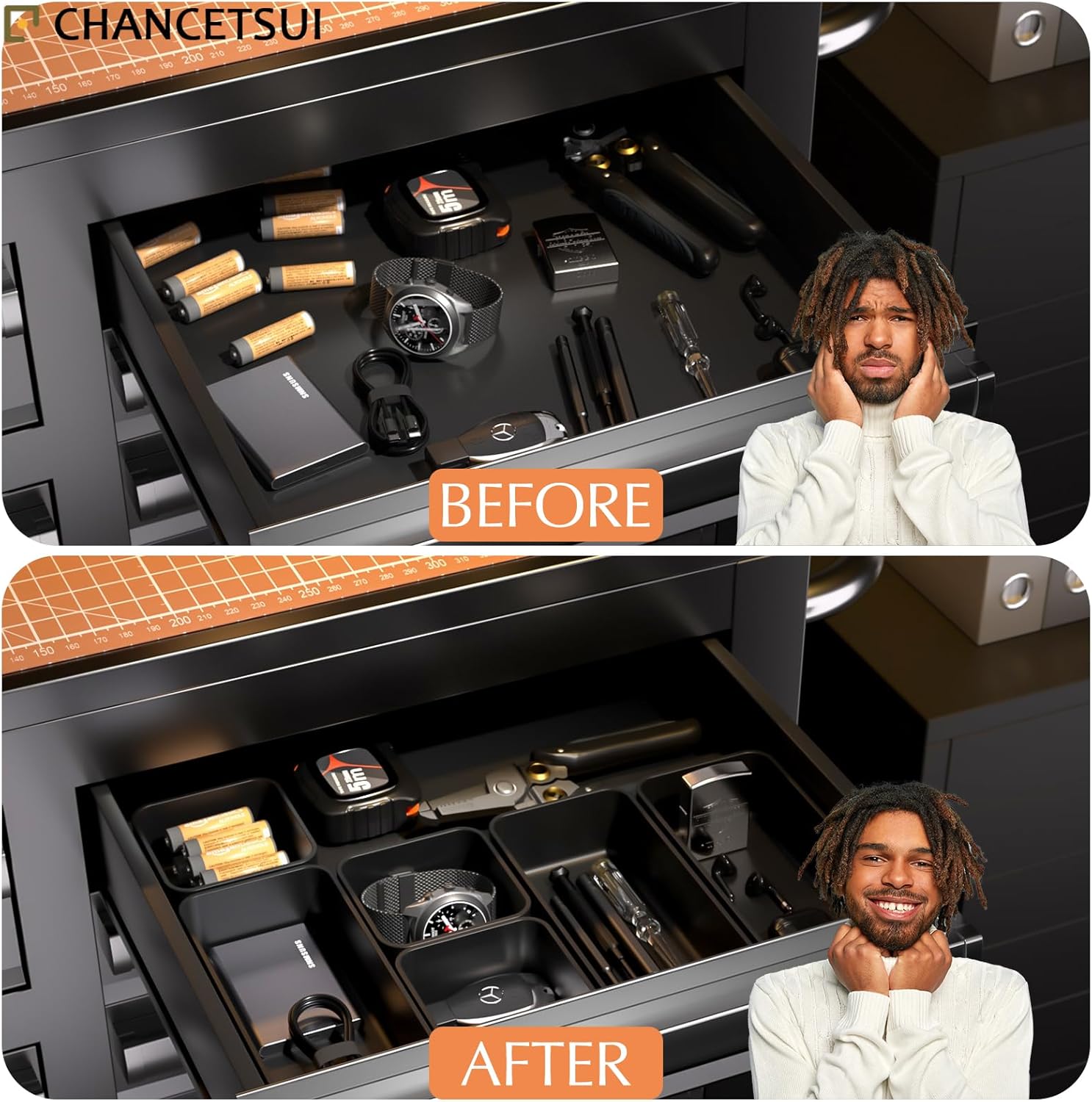 - ăCustomize and Stackableă Individual Plastic Storage Bins can be used to separate your messy drawer and fit all kinds of drawers, such as vanity, bathroom, kitchen, and office drawers. You can customize the layout of the drawer organizers to suit any specific needs.
