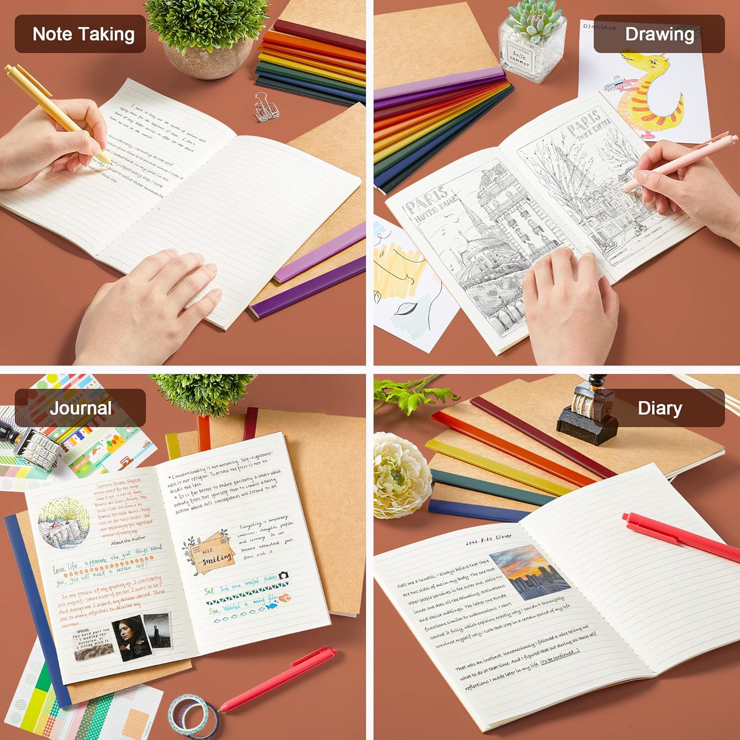 feela 56 Pack Composition Notebooks Bulk, Kraft Cover Lined Blank College Ruled Composition Travel Journals with Jewel Tone Spines For Women Students, 60 Pages, 8.3”x 5.5”, A5, 8 Vintage Colors