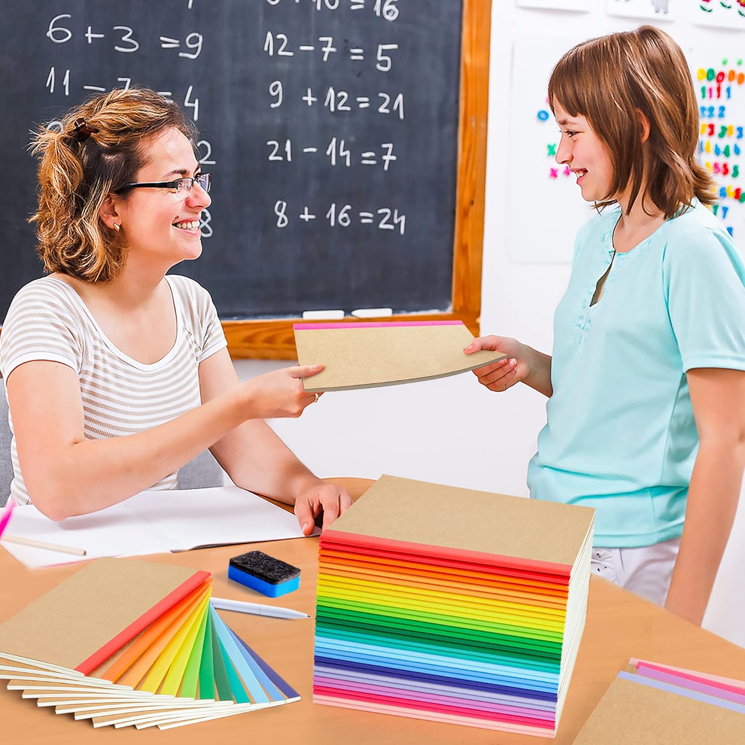 - Feela Composition Kraft Notebooks contain 48 kraft cover notebooks with rainbow spines of 16 different colors. There are 3 notebooks of the same color. Each of them measures 8.3” x 5.5”, which is easy to carry in bag and easily held by students.
