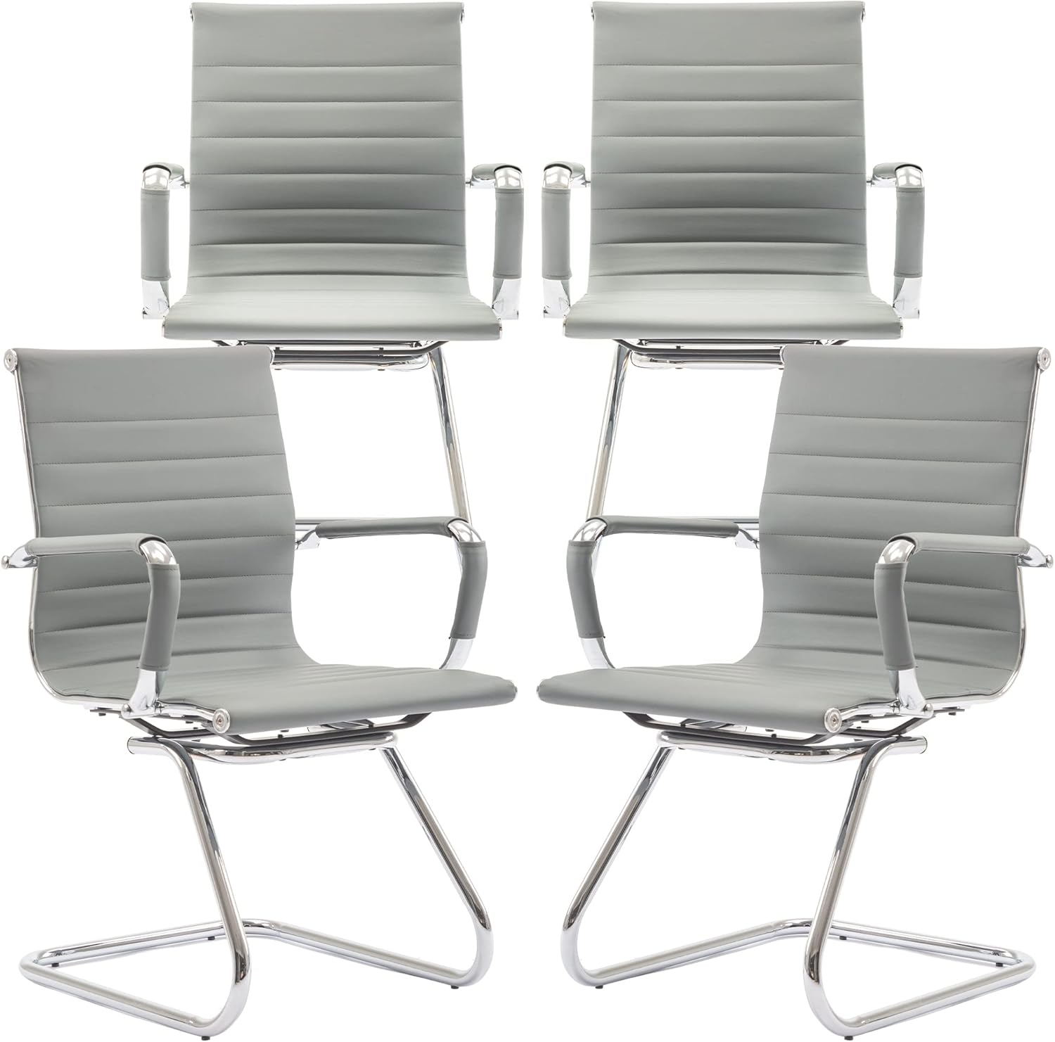 Office Desk Chair No Wheels Set of 4 PU Leather Computer Chairs Mid Back Guest Chairs for School Reception Conference Waiting Room, Grey