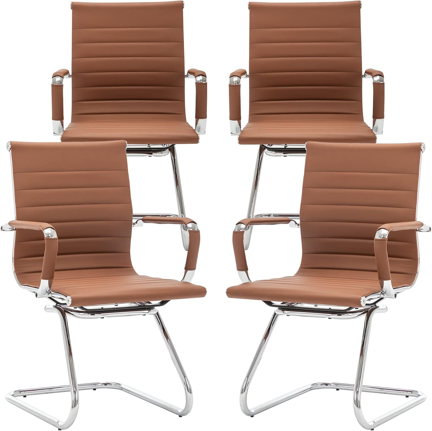 Office Desk Chair No Wheels Set of 4 PU Leather Computer Chairs Mid Back Guest Chairs for School Reception Conference Waiting Room, Cafe