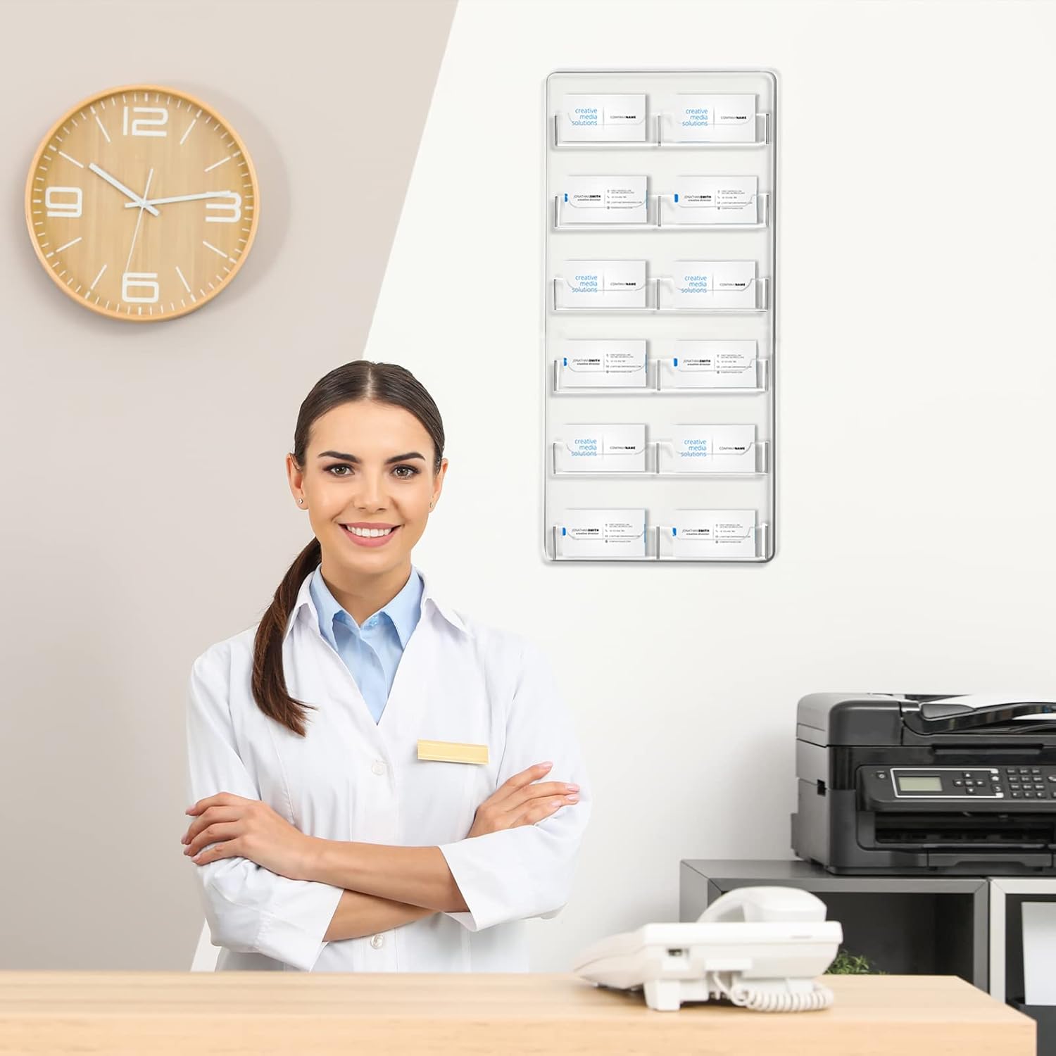 Qunclay 2 Pack 12 Pocket Acrylic Business Card Holder Wall Mount Clear Sticker Display Rack Vertical Multiple Gift Card Rack Display Stand for Home Documents Brochures Hanging Organizing Office Table