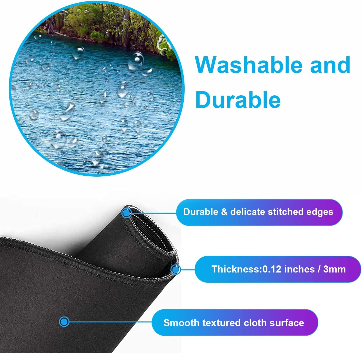 - Large and Extended Dimensions: 35.4" x 15.7" x 0.12" (900 mm X 400 mm), 3 mm thick. It will fit your desktop perfectly and provide the perfect space to move around, you can also use this extended mouse pad as office, gaming, keyboard pad, platform protector or desk pad, and for all types of mice and more.
