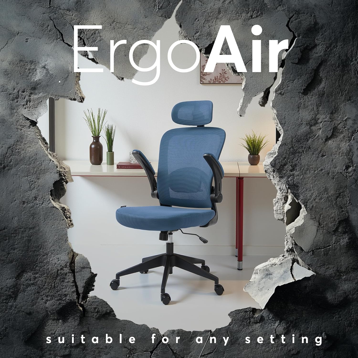Oline ErgoAir Ergonomic Office Chair – Adjustable Lumbar Support, Flip-Up Armrests, Mesh Computer Desk Chair, Swivel Rolling Executive Gaming Chair for Home & Office (Navy Blue)