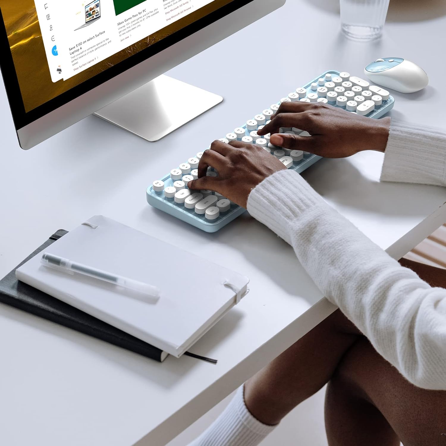 MOFII Wireless Keyboard and Mouse, Retro Full Size Typewriter Keyboard and 3 Adjustable DPI Mouse Combo for Windows 7/8/10, Laptop, Desktop, PC, Computer (Blue)
