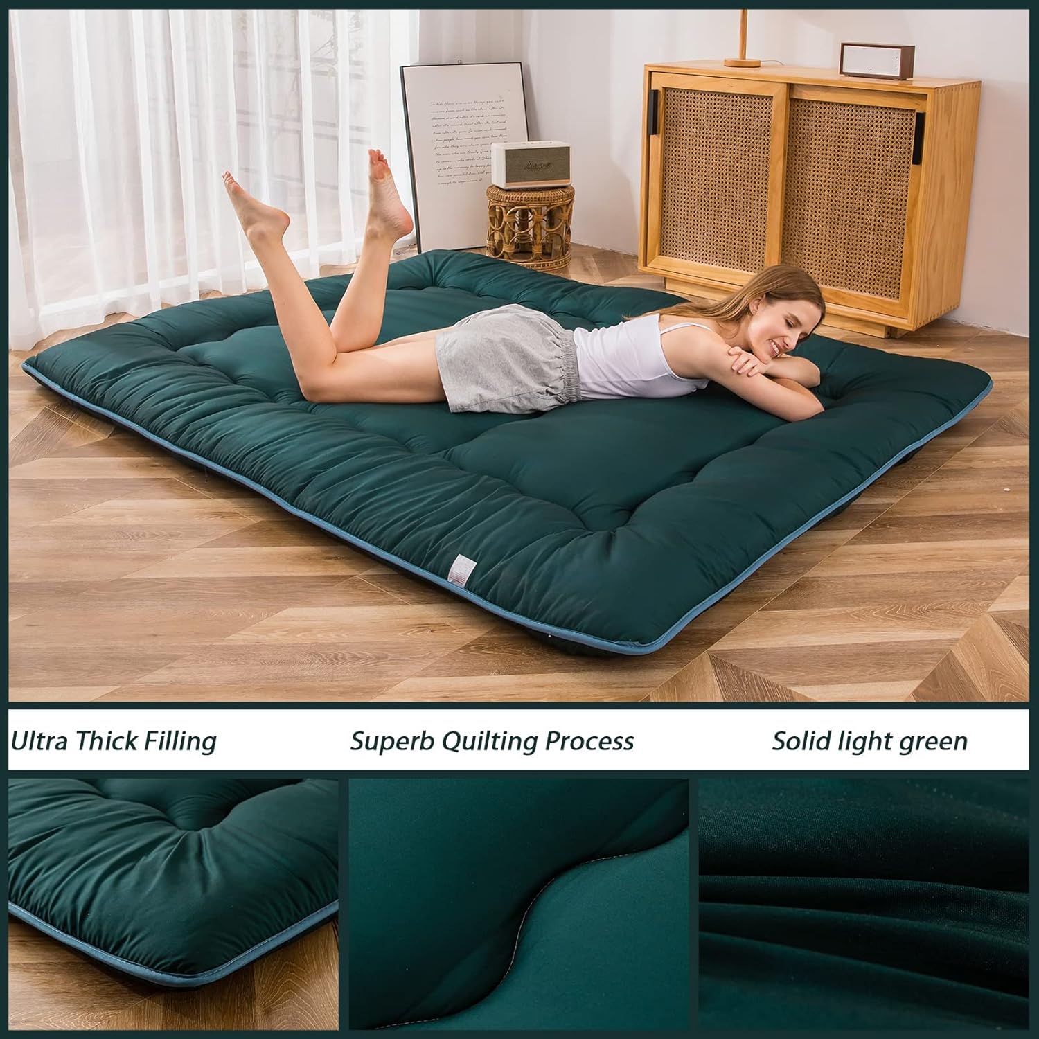 MAXYOYO Japanese Floor Mattress Futon Mattress, Thicken Sleeping Pad Foldable Roll Up Floor Futon for Adults Tatami Mat Dormitory Bed Lounger, Dark Green, Twin Size