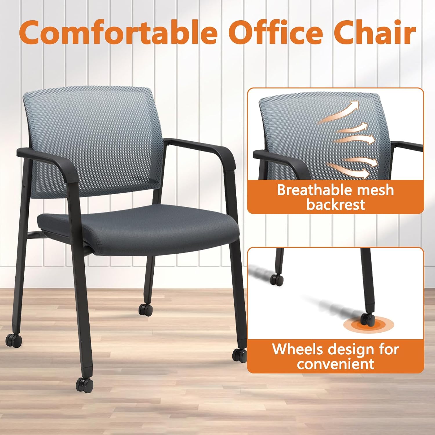 - ćEnjoy A First-Class Seating ExperiencećSay goodbye to pain and fatigue. Our mesh guest chair combines comfort and style. The breathable mesh back allows air flow to keep your back cool, while the cushion is filled with high-density sponge, which is not easily deformed after sitting for a long time. Streamlined fixed armrest help you relieve arm pressure.