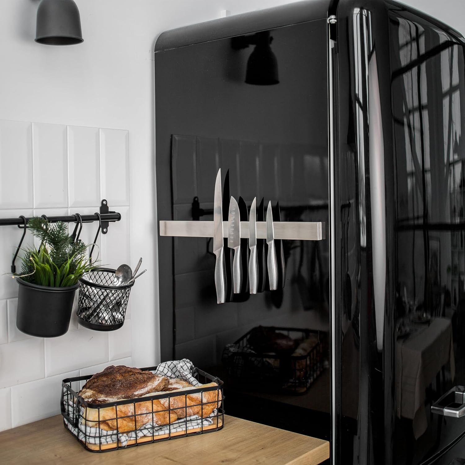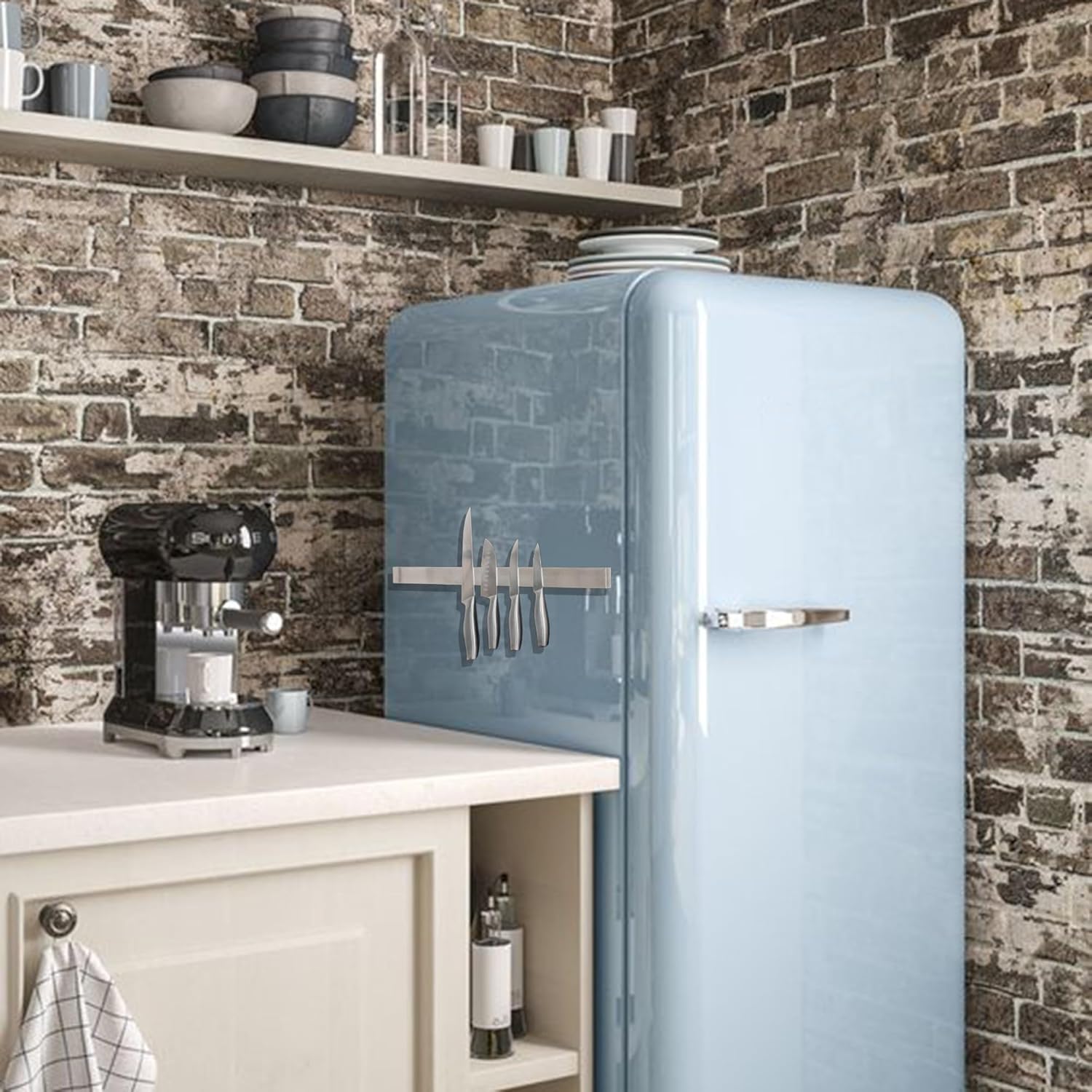 - This kitchen magnetic knife bar will be an irreplaceable assistant in your kitchen. Since the magnetic fridge knife holder is made of 304 stainless steel, you can easily wash it. This knife strip magnet comes with step-by-step illustrated mounting instructions
