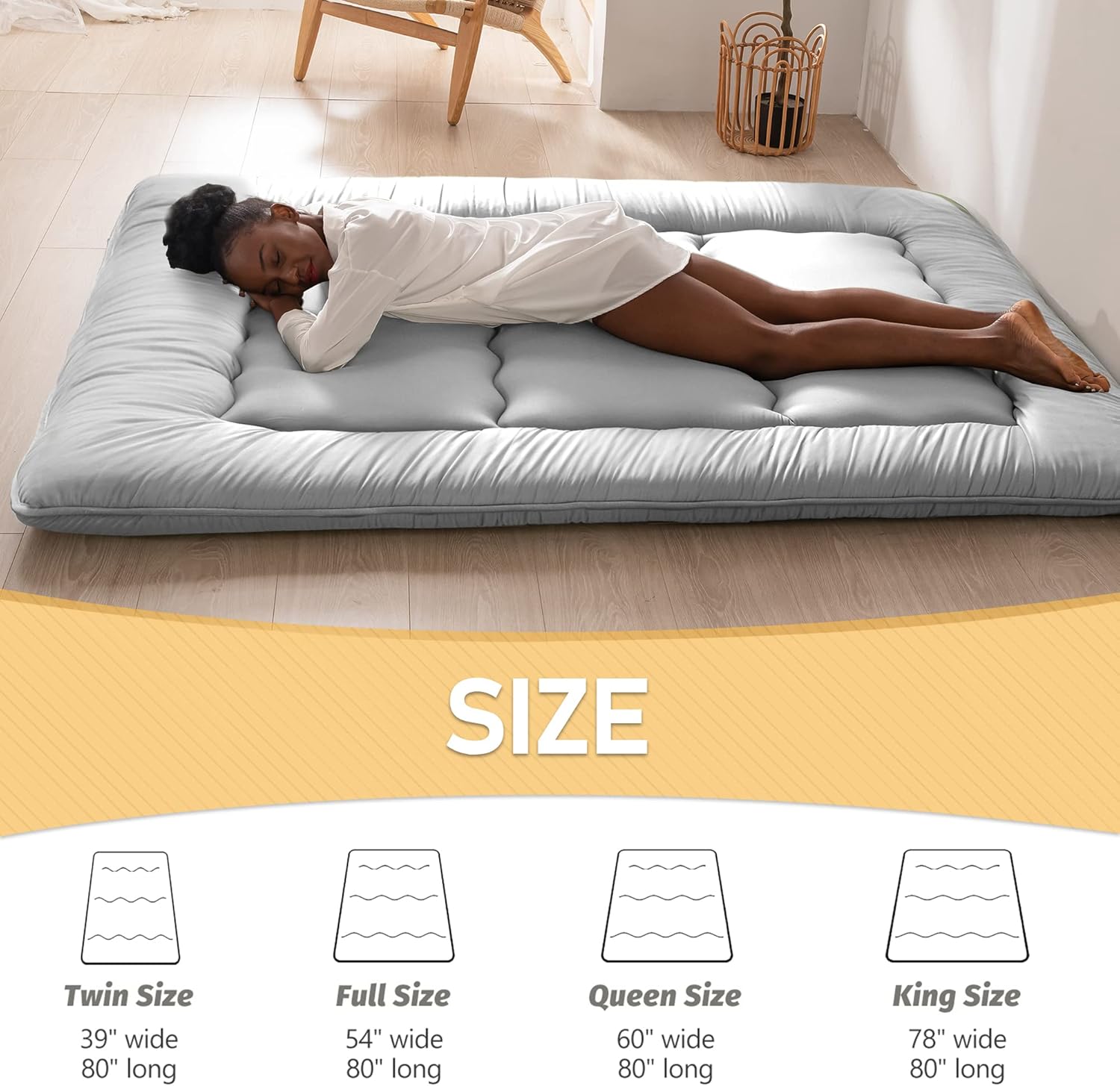 - WIDE VERSATILITY: It can be used as Bedroom Futon/Living Room Futon/Tatami Mat/Floor Mattress/Sleeping Floor mat/Tent Mat/Guest Mattress/Japanese Bed Mat, also can be kids play mat/floor pillow bed, also bring it with you in your car when going to anywhere, it is a good accompany for your family, Just Enjoy Your Leisure Time with MAXYOYO Japanese Floor Mattress