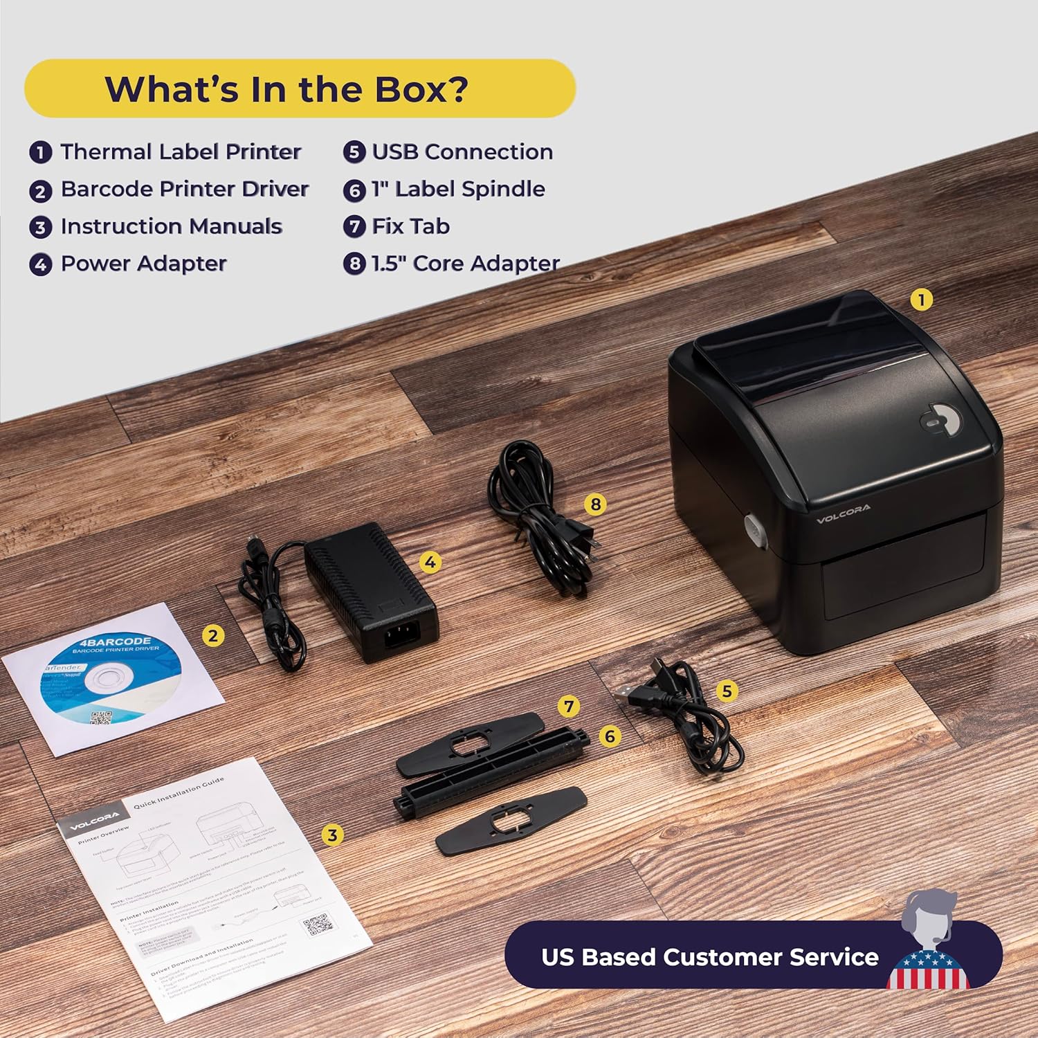 - EASY SETUP & TECH SUPPORT - The shipping label printer comes with a driver included for hassle-free installation on Windows, Linux, and Mac operating systems. Alternatively, users can scan the QR code on the manual or visit the support site to download the driver and tools. Our U.S. based customer support is also available for any technical assistance. Plus, all Volcora products come with a limited lifetime warranty so you can purchase with peace of mind.
