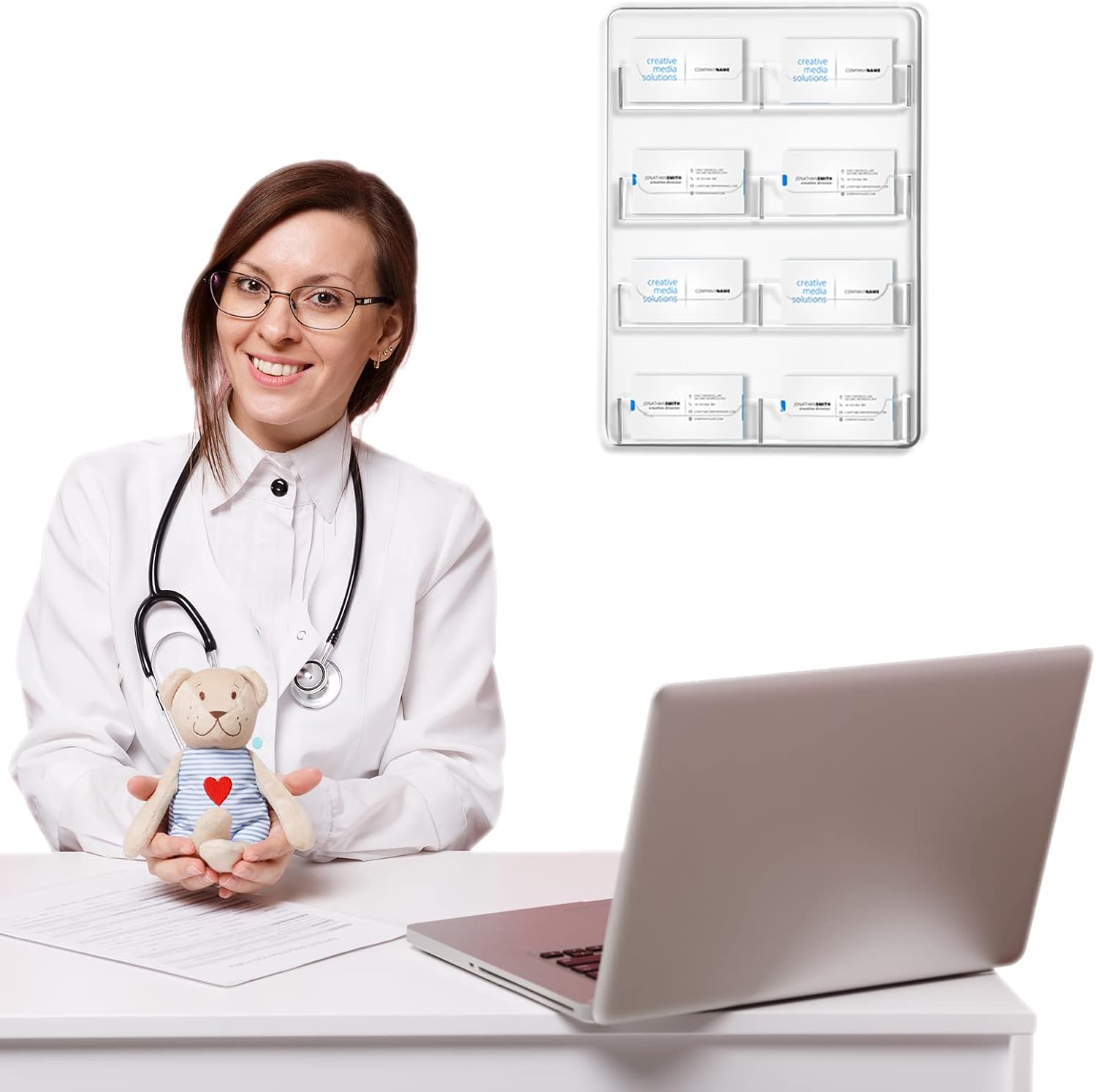 Hillban Acrylic Business Card Holder Wall Mount Clear Sticker Display Rack Multiple Card Holders Clear Acrylic Organizing Sticker Display Stand Pre Drilled(8 Pockets)