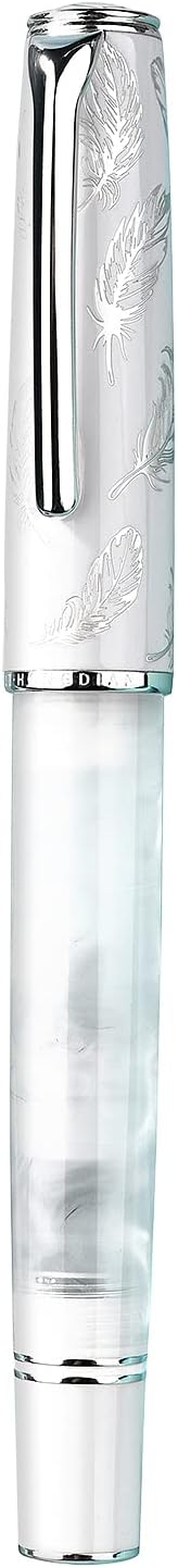 - β Elegant Design - The pen cap is plated with silver feathers through jewelry processing. A cute bird is also engraved on the top. The white acrylic pen body is crystal clear, like ripples of clouds, and shows gorgeous and delicate texture in the light.