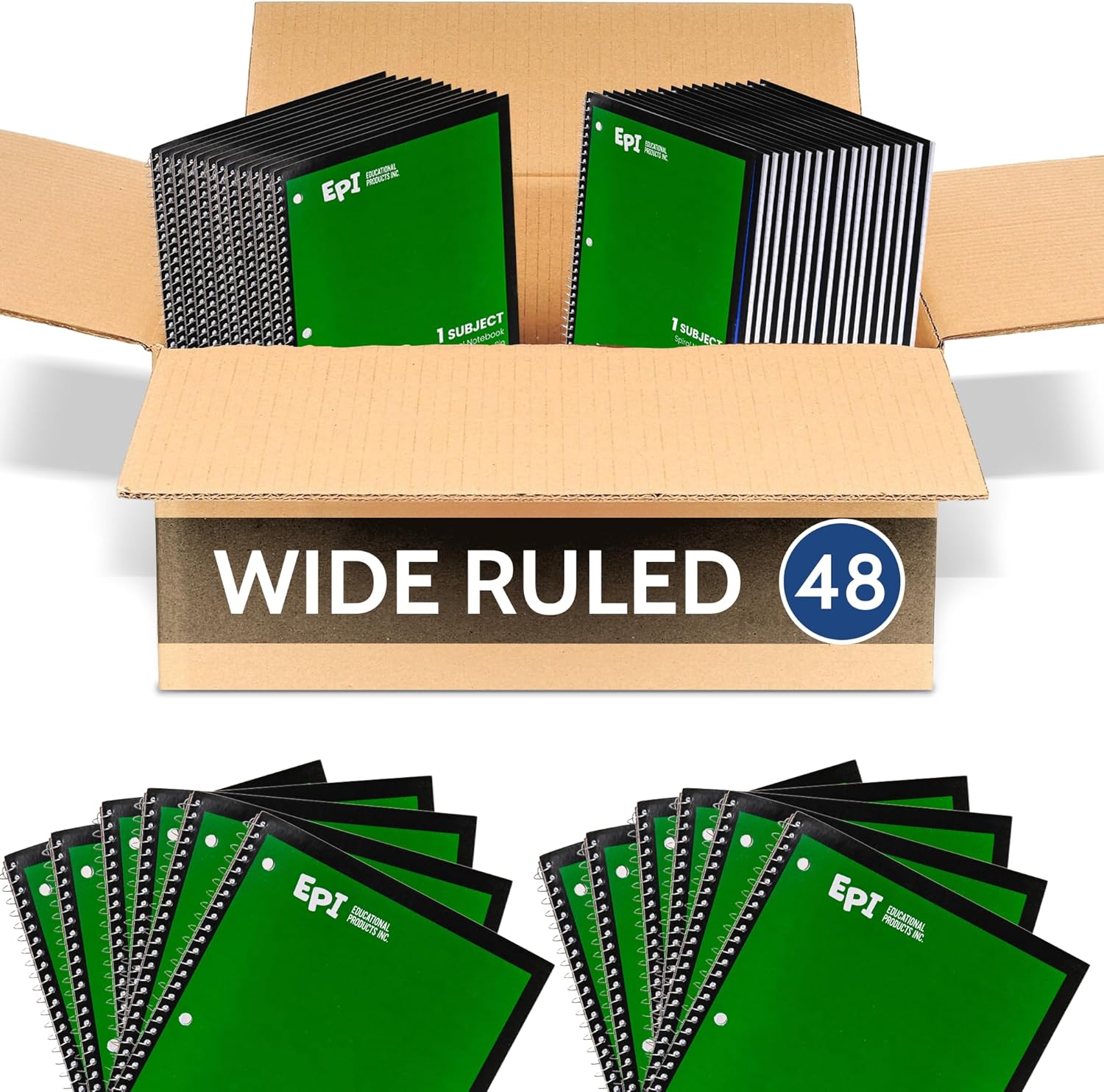 EPI Spiral Notebook | Wide - 70 Sheets, Durable Spiral Binding | 10.5 x 8 in | Classroom Supplies | School, Office, Note Taking, Journaling - 48 Pack