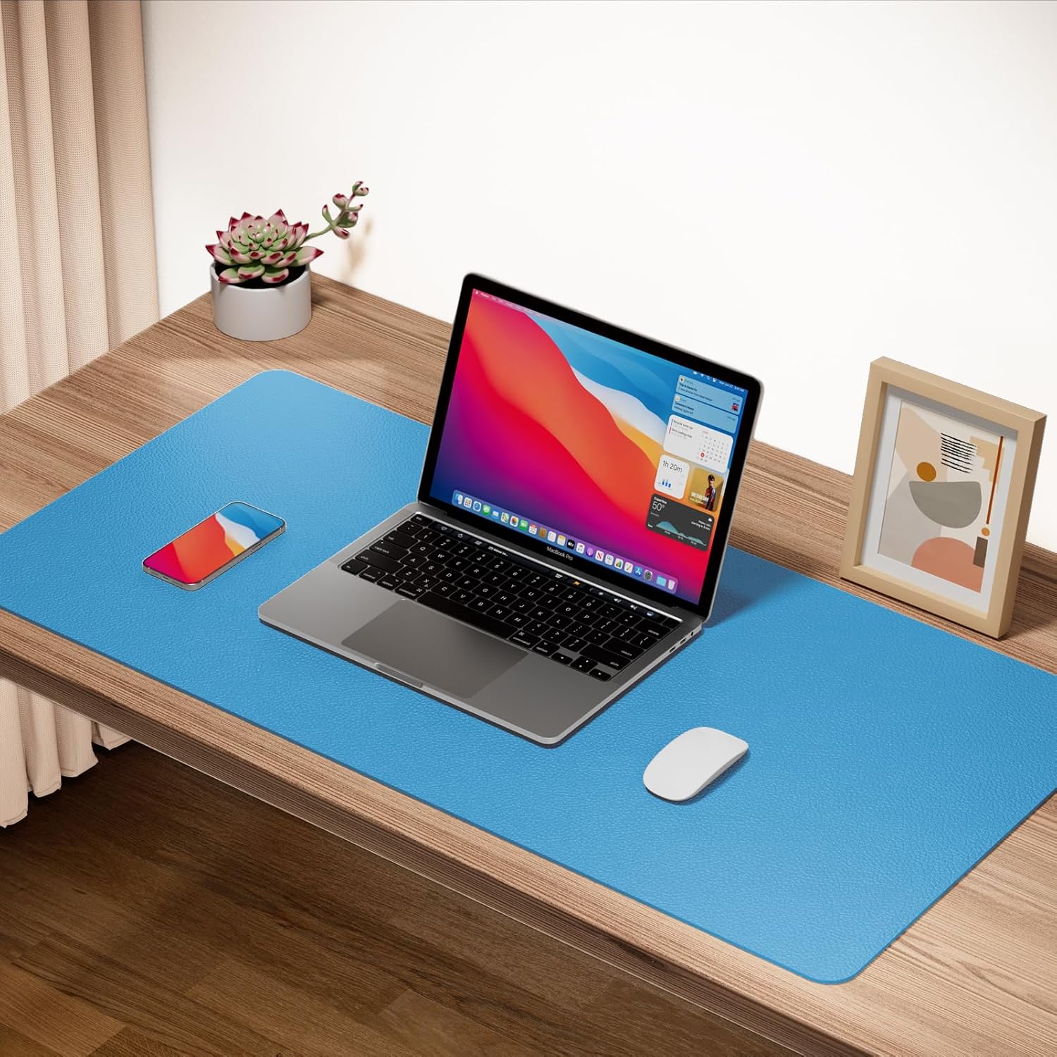 Boutilon Leather Desk Pad Protector,Non-Slip Mouse Pad,Laptop Desk Pad,Office Mouse Mat,Waterproof Leather Desk Blotter,Desk Writing Pad for Office and Home (M-Blue,30"x14")