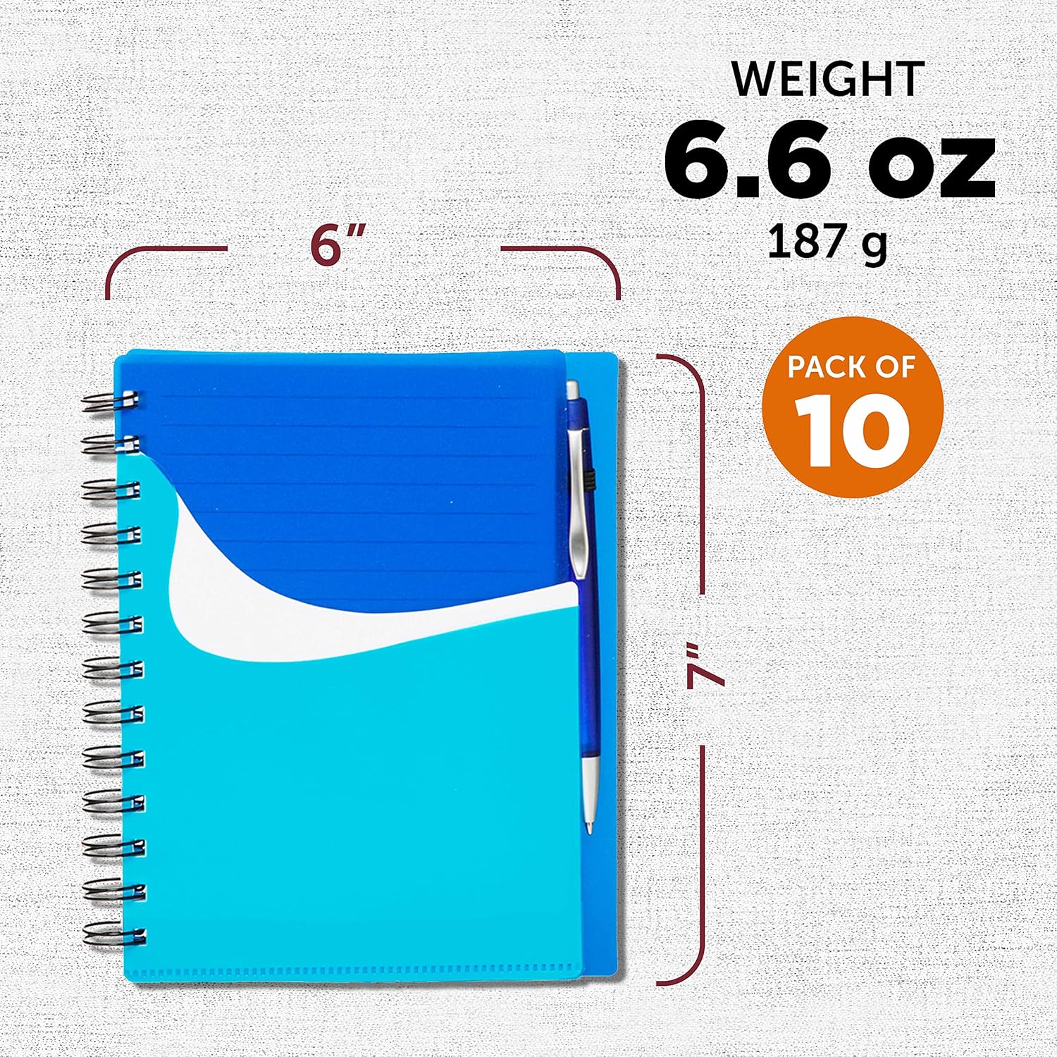 DISCOUNT PROMOS Spiral Notebooks with Front Pocket Set of 10, Bulk Pack - Durable Plastic Cover, Includes Matching Pen in Blank Ink, Perfect for School, Office, Home - Blue