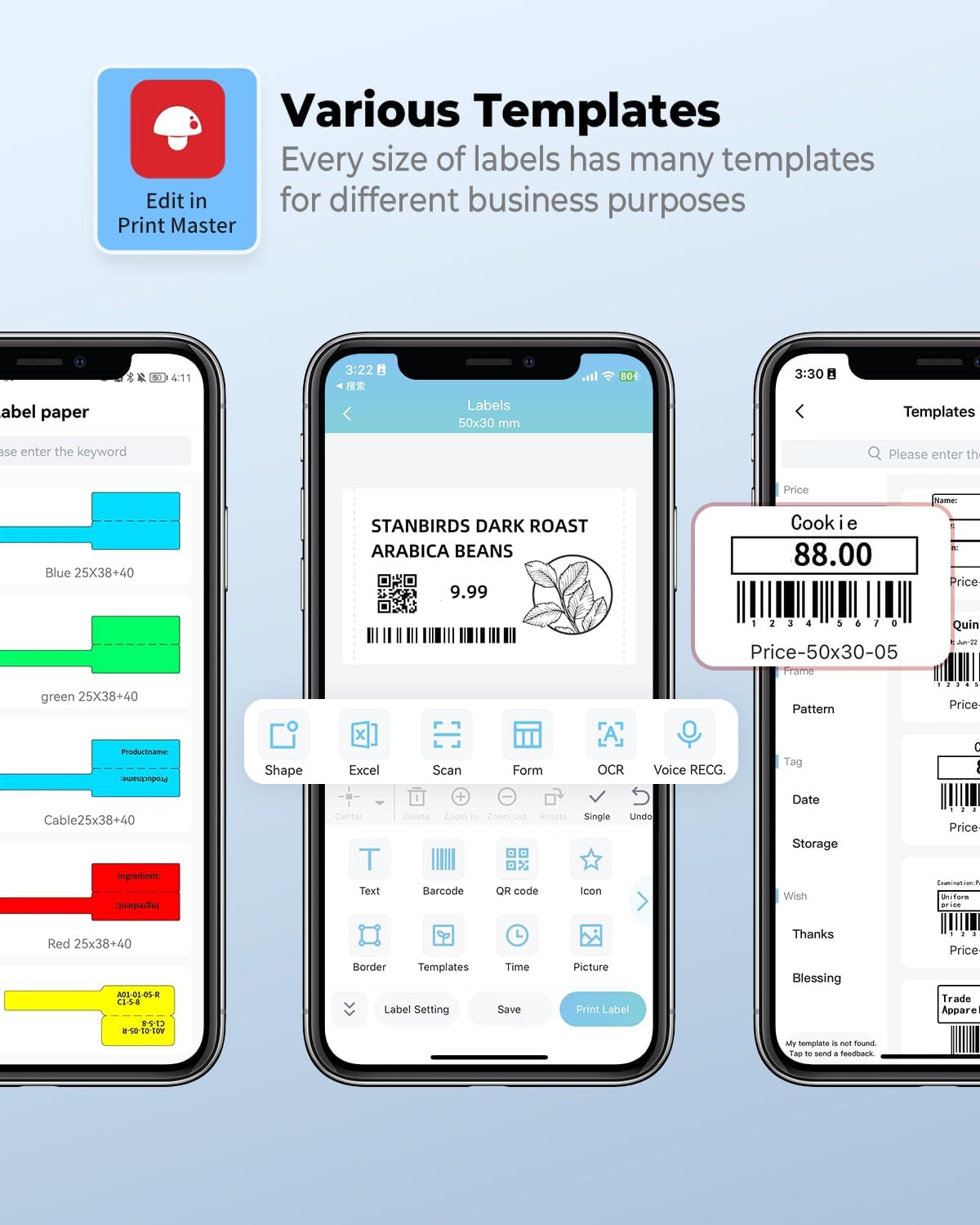 - [All-in-One Label Maker] Create stunning labels with 130+ Fonts & 300 Templates. Use ready-made templates for address labels, classroom supplies, or wedding favors β no design skills needed! Subscribe to the Print Master to unlock more new templates