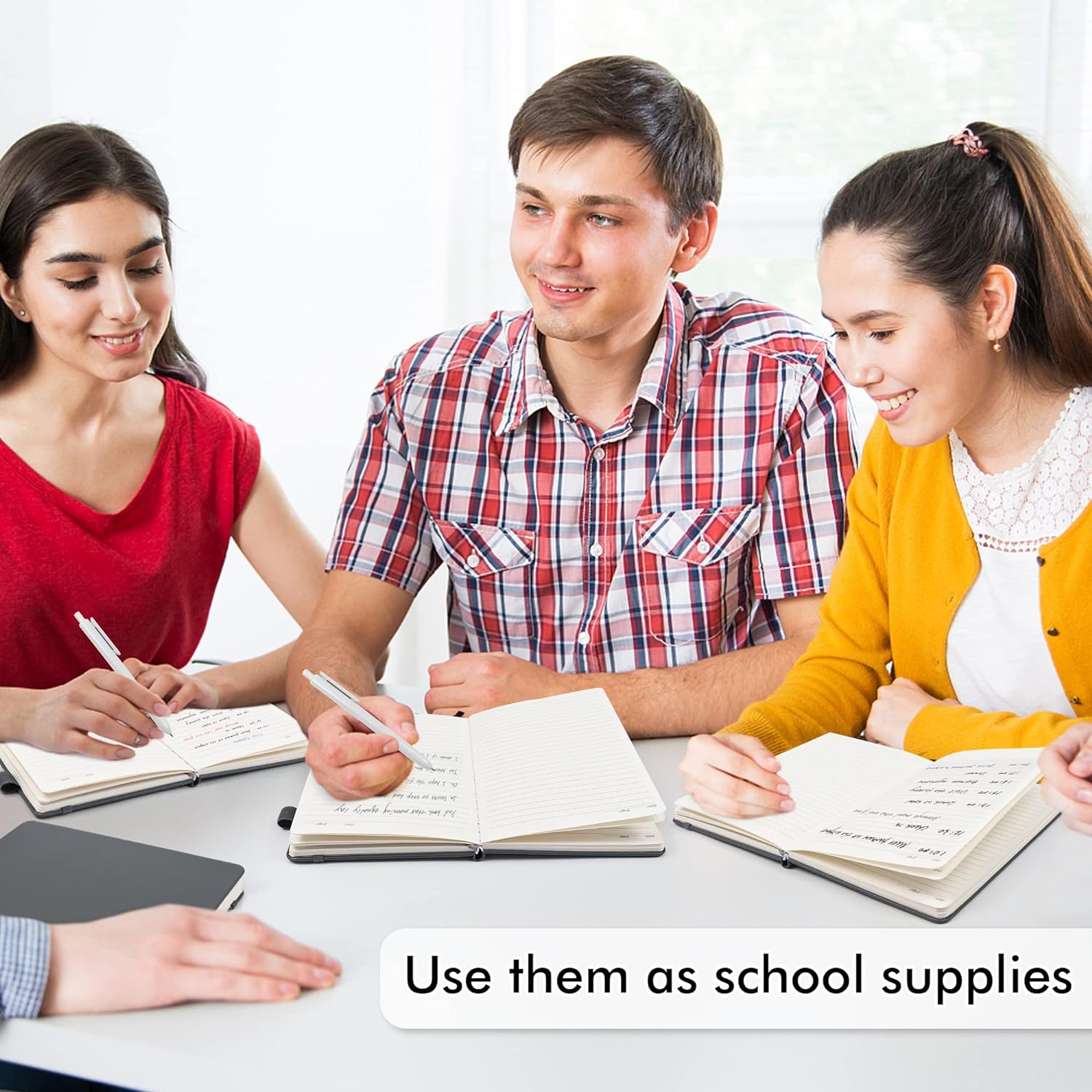 - There are 8 Black Retractable Pens in the box. You can use it as soon as you receive it. These pens are perfect to be put in the pen holder of the classic ruled notebook. Large tube has the capacity of restoring more ink, which makes them long lasting. Quick drying can avoid smearing and smudge.