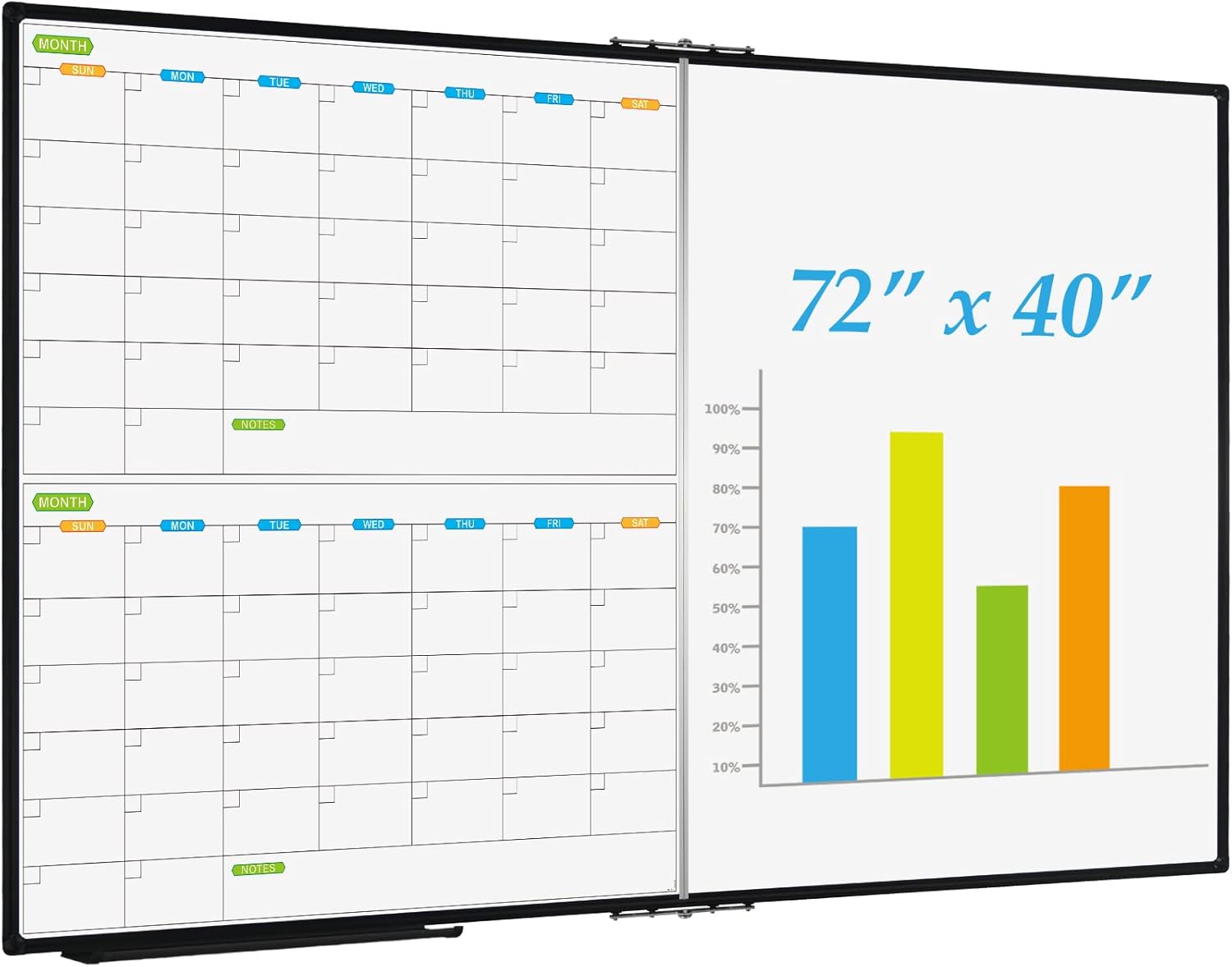 JILoffice Magnetic Foldable Dry Erase Calendar Whiteboard Combo, 2 Month Calendar Board & White Board 72 X 40 Inch, Black Aluminum Frame Wall Mounted Board for Office Home and School