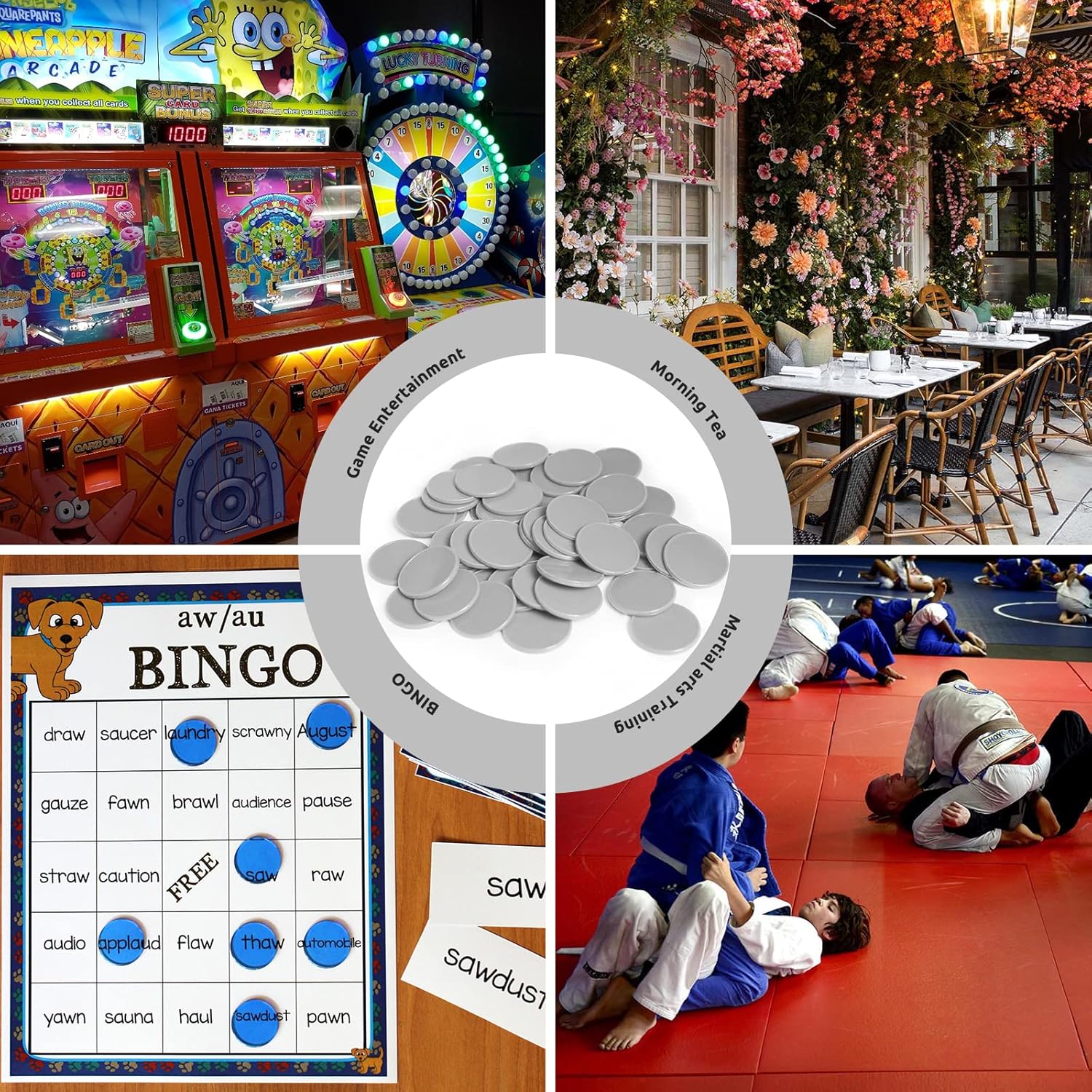 Set of 100 Opaque Plastic Learning Counters Mini Poker Chips Game Tokens with Storage Box (LightGray, 1 Inch)