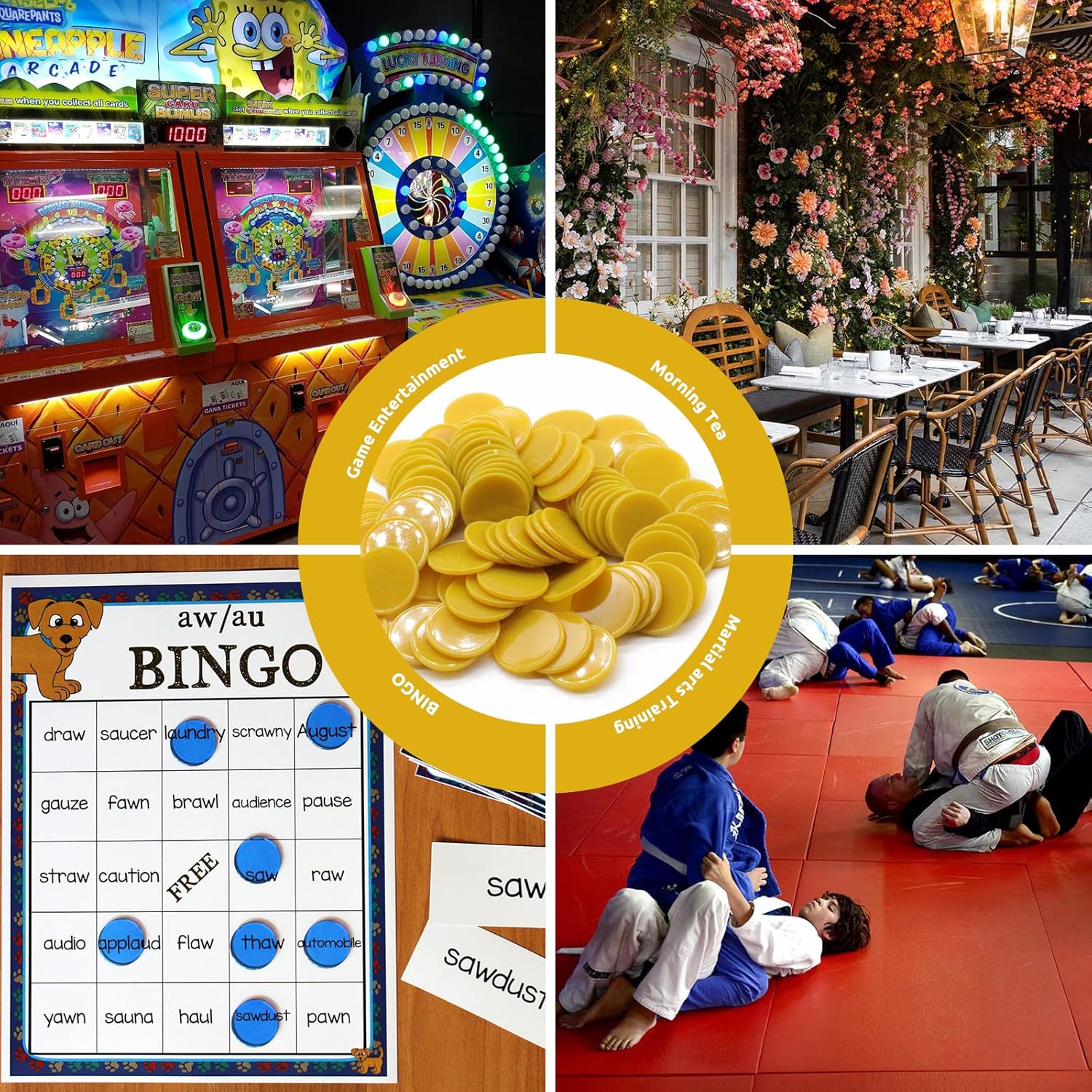 Set of 100 Opaque Plastic Learning Counters Mini Poker Chips Game Tokens with Storage Box (Goldenrod, 1 Inch)