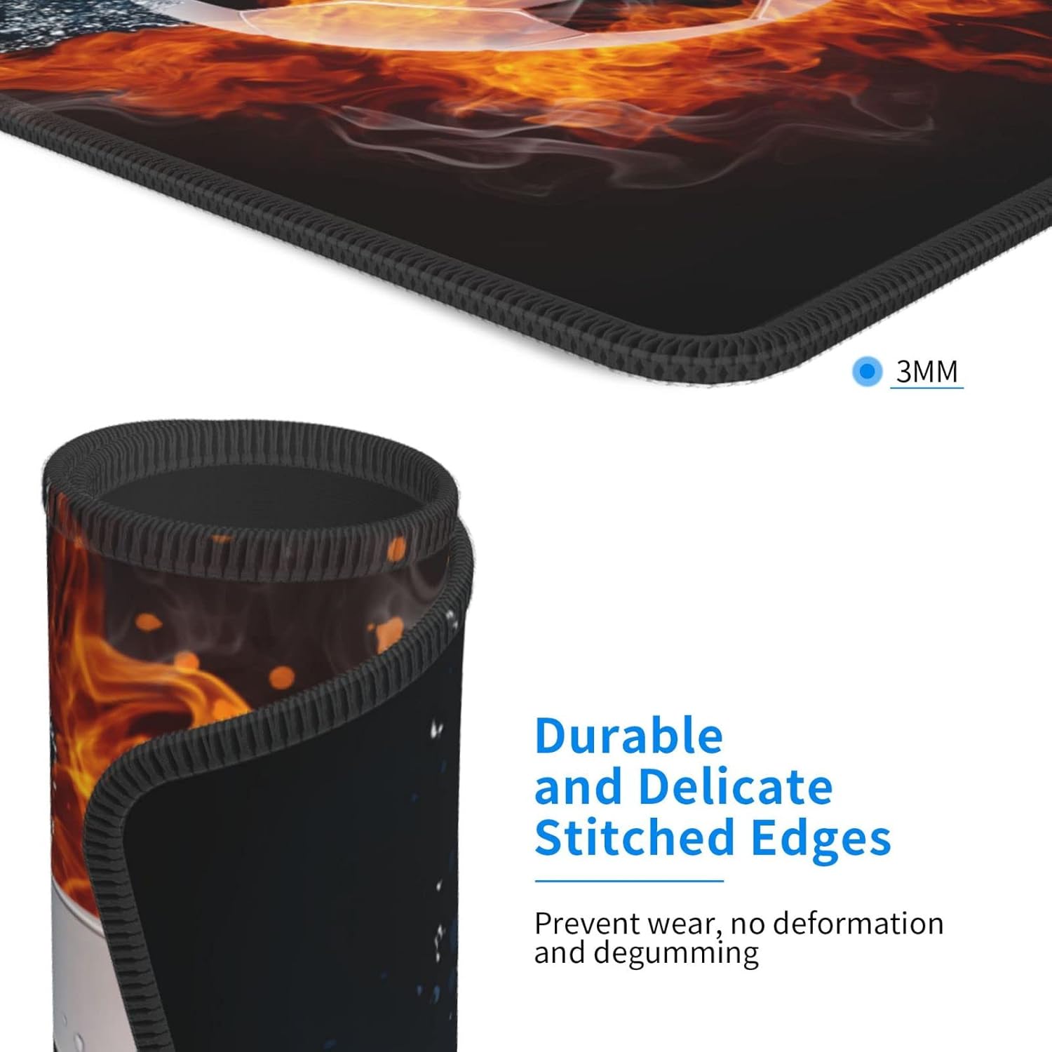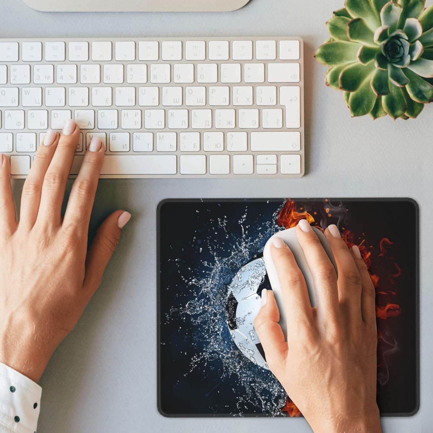 Soccer Ball Print Mouse Pad for Desktop, 12x10 inch Large Square Mouse Pad with Water Fire Pattern for Sports Teen Boys Men Women Girls, Non-Slip Rubber Base Computer Mousepad for Wireless Mouse