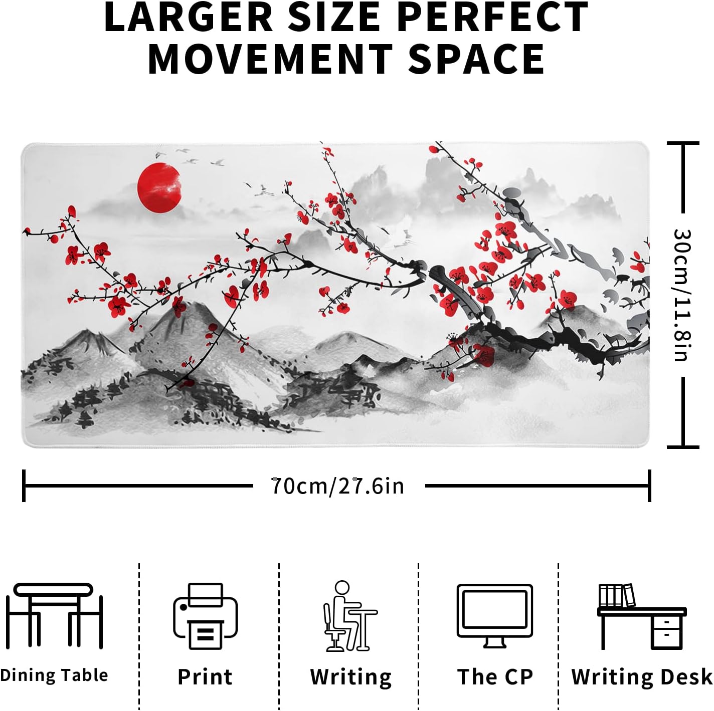 - β₯[Extended Mouse Pad Size]:The extended Cherry Blossom desk pad measures 27.6x11.8x0.12 inches that covers most of the desk. Offers a wide area to have your laptop, mouse and keyboard. You can freely move your mouse without any interruption and don't have to continually adjust the mat as you do with traditional mousepads.