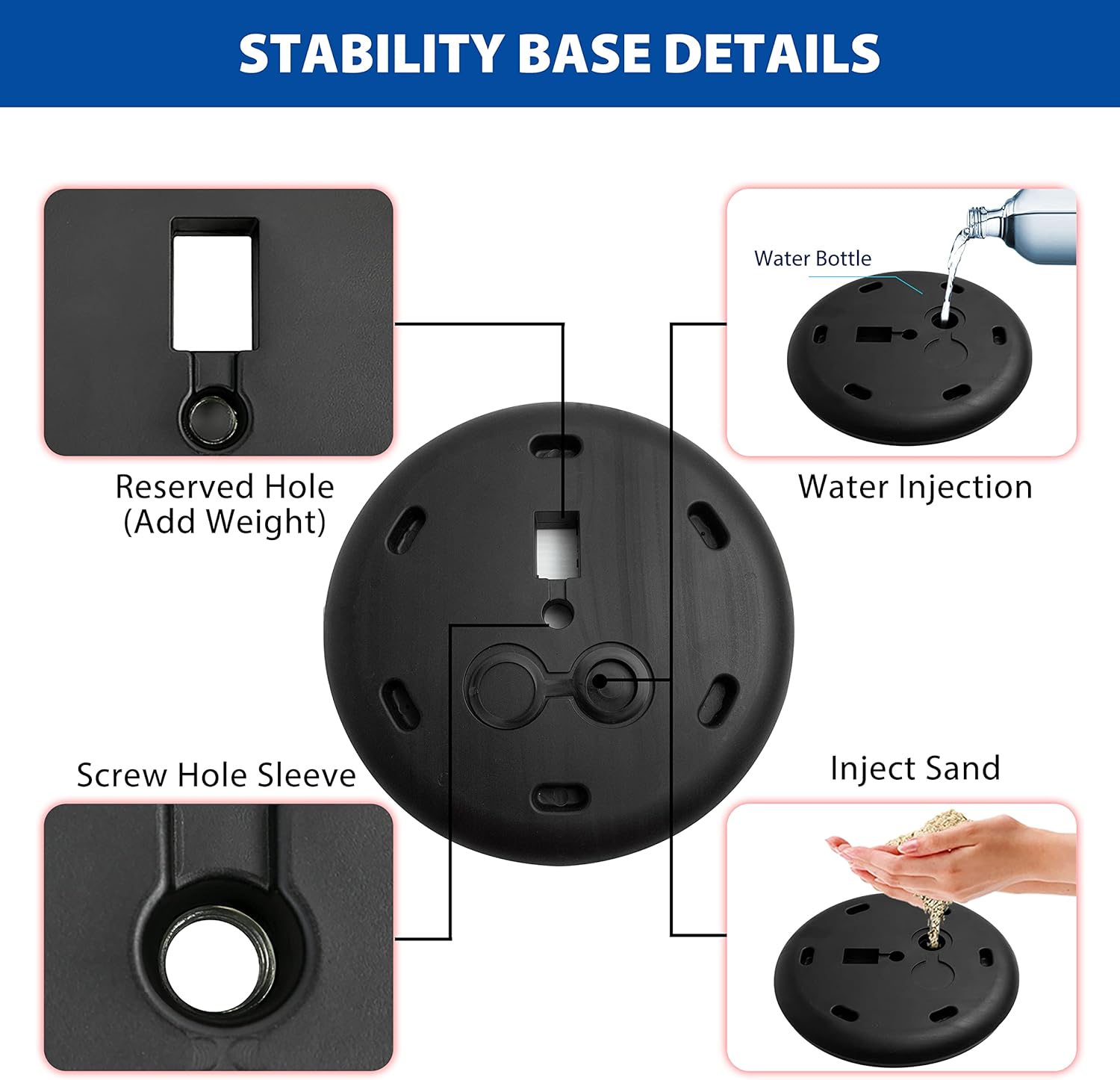 - ✔Stable Base: We use thickened stainless steel base. For balance, water or sand can also be added to the rubber base to add stability. And comes with rubber strips to protect the floor from scratches. (If any part is broken, it can be replaced.)