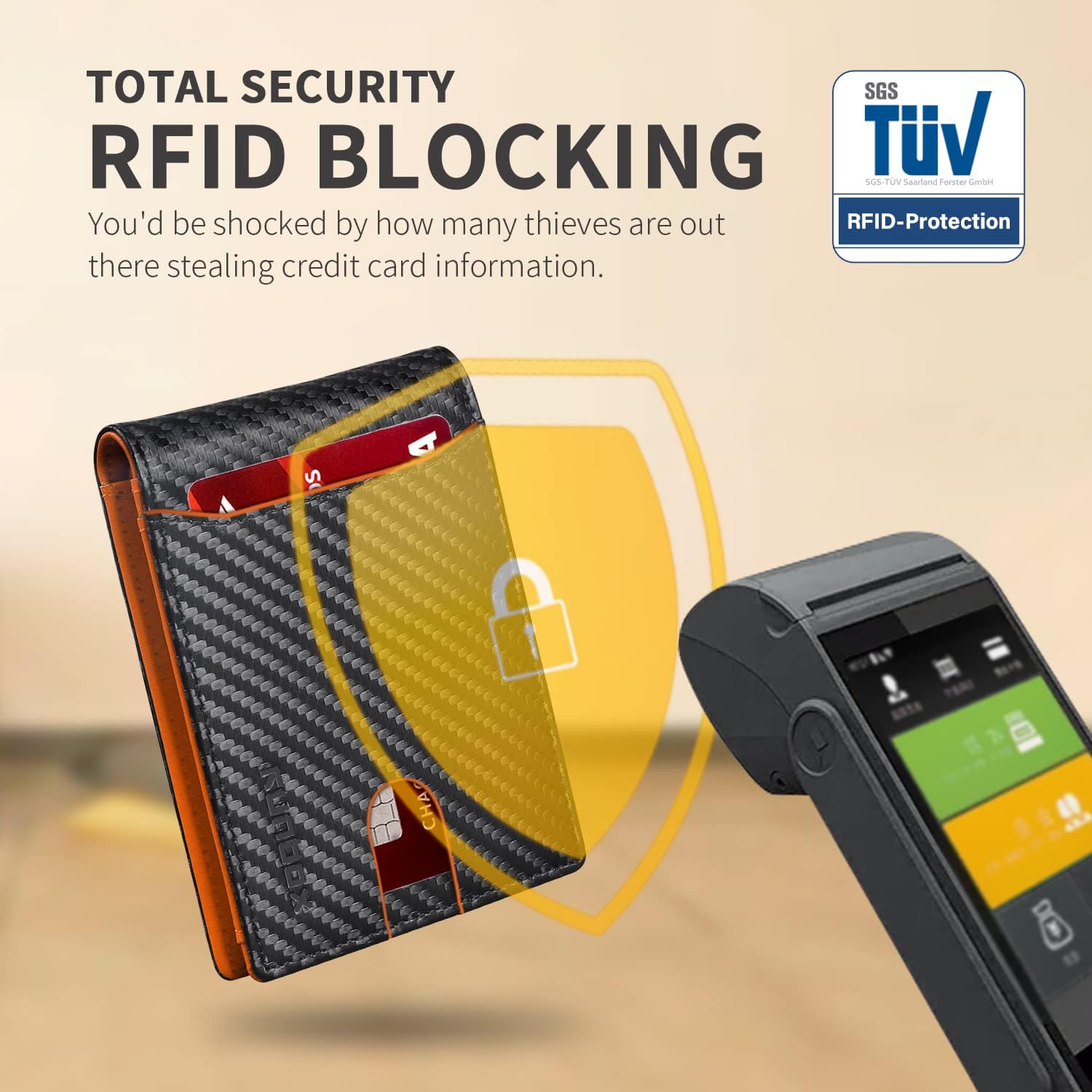 • RFID Blocking - This wallet for men are designed by German designer, made of genuine leather material, durable, wear- resistant and scratch-resistant. Our wallets block the 13.56 MHz band and protect against data theft by RFID scanners