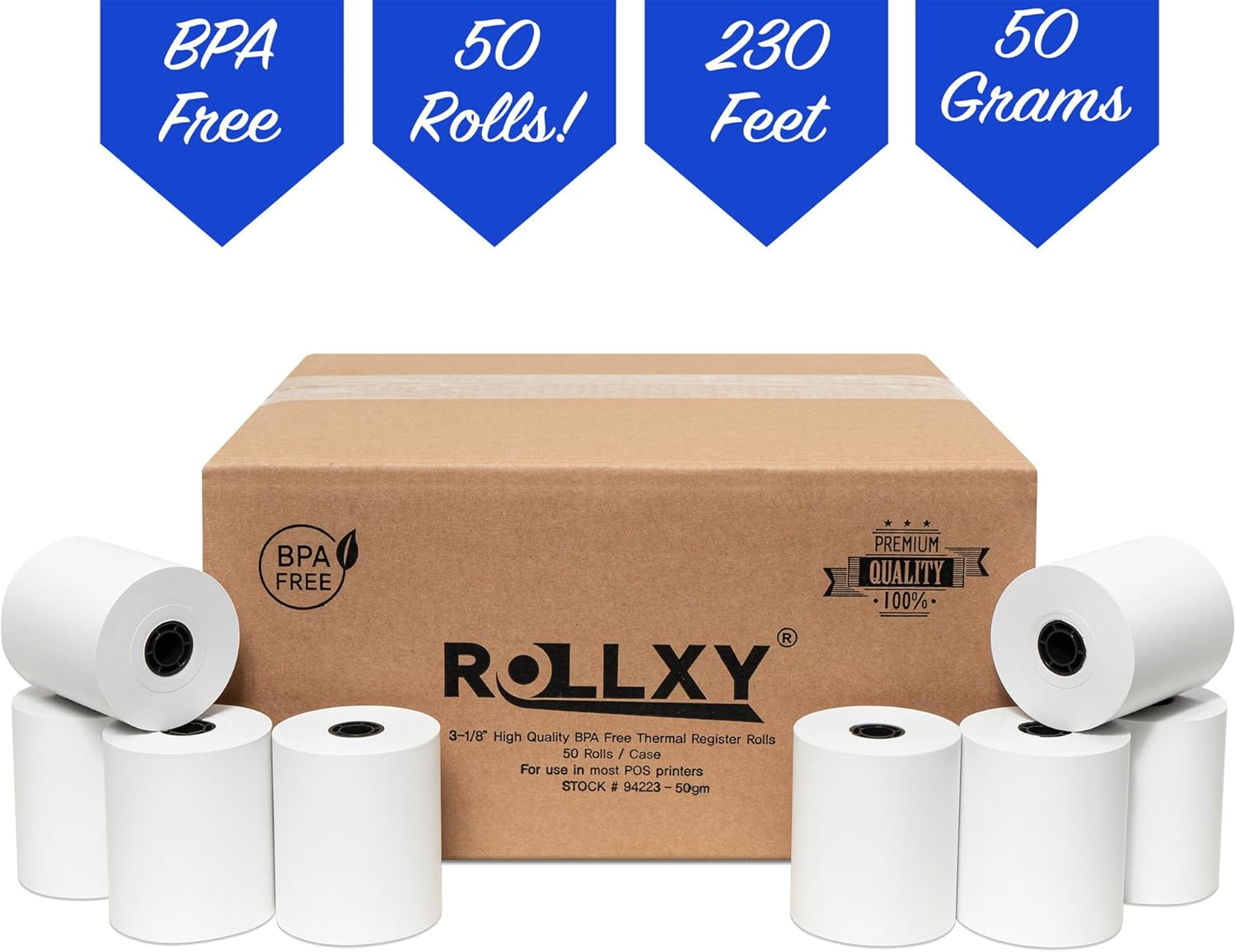 3-1/8 X 230 Thermal Paper Compatible with Star CT-S300 Tsp 100 BPA Free 50 rolls by Rollxy (50gm Thickness)