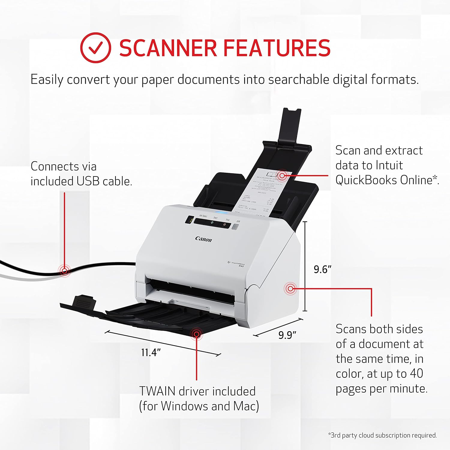 Canon imageFORMULA R40 Office Document Scanner Receipt Edition, for PC and Mac, Scan & Extract Data to QuickBooks Online, Color Duplex Scanning, Auto Document Feeder, Easy Setup for Office Or Home Use
