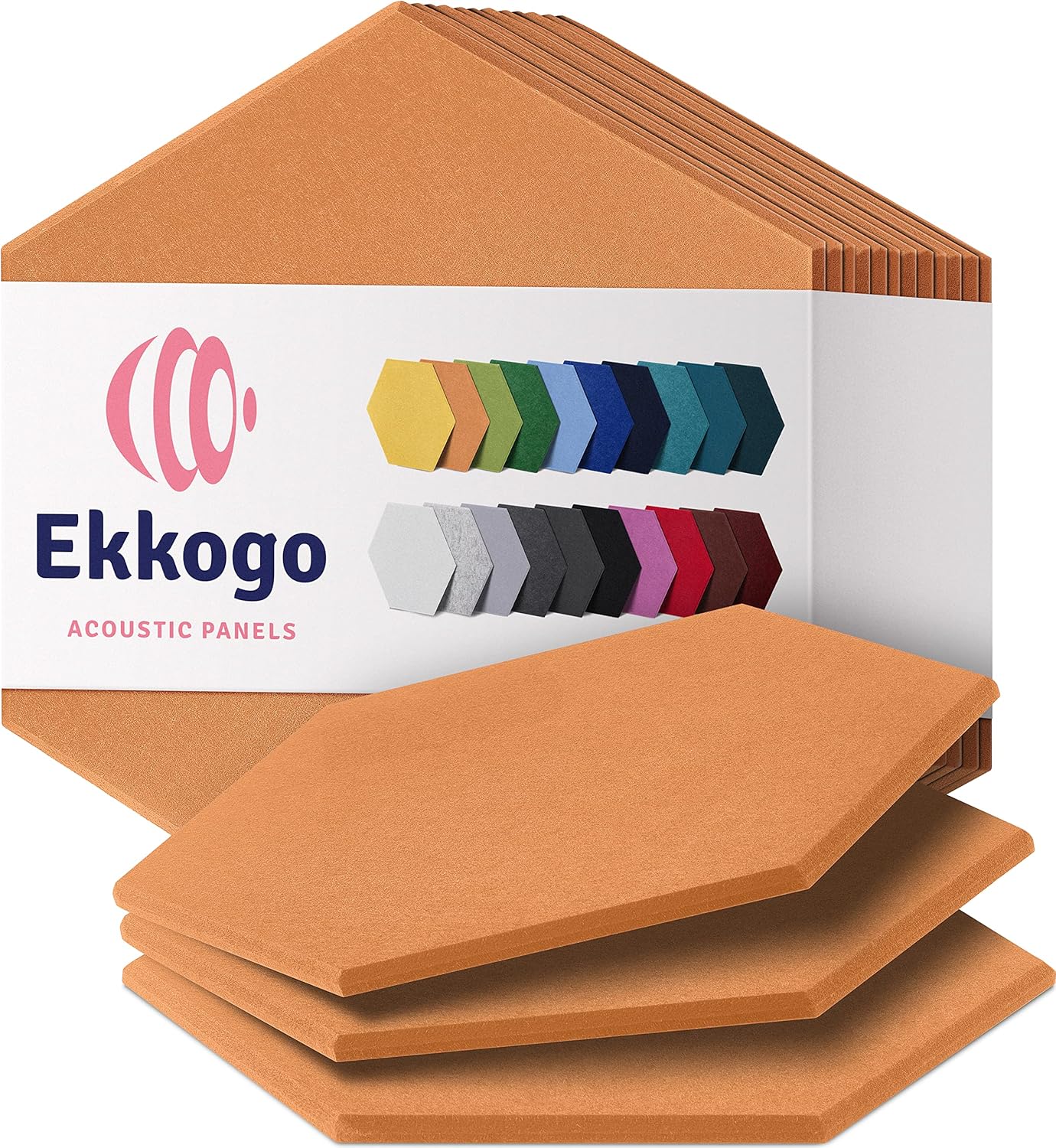 Acoustic Panels 12-Pack Soundproof Wall Panels 12"X10.4"X0.4" Sound Panels High Density Sound Dampening Panels - [70'S Orange Hexagon]
