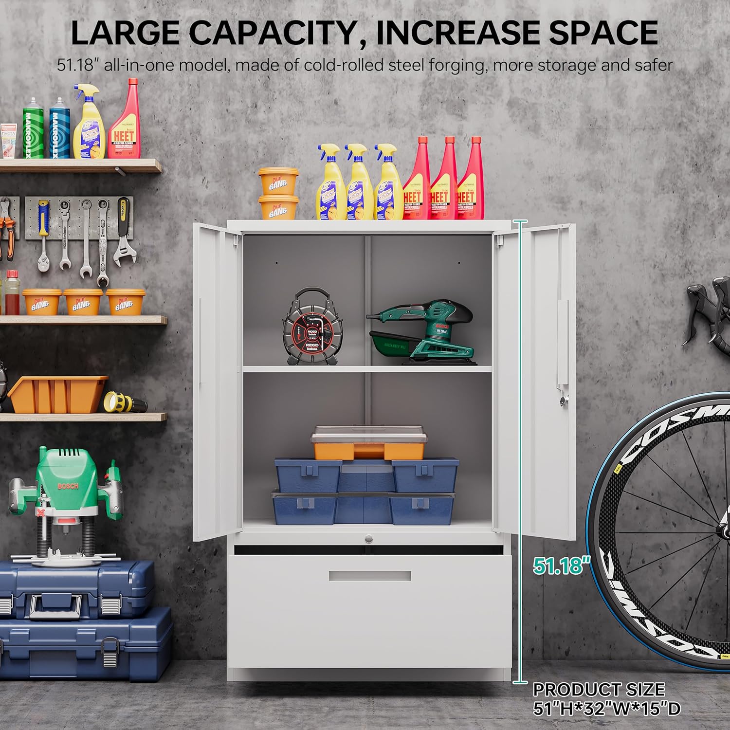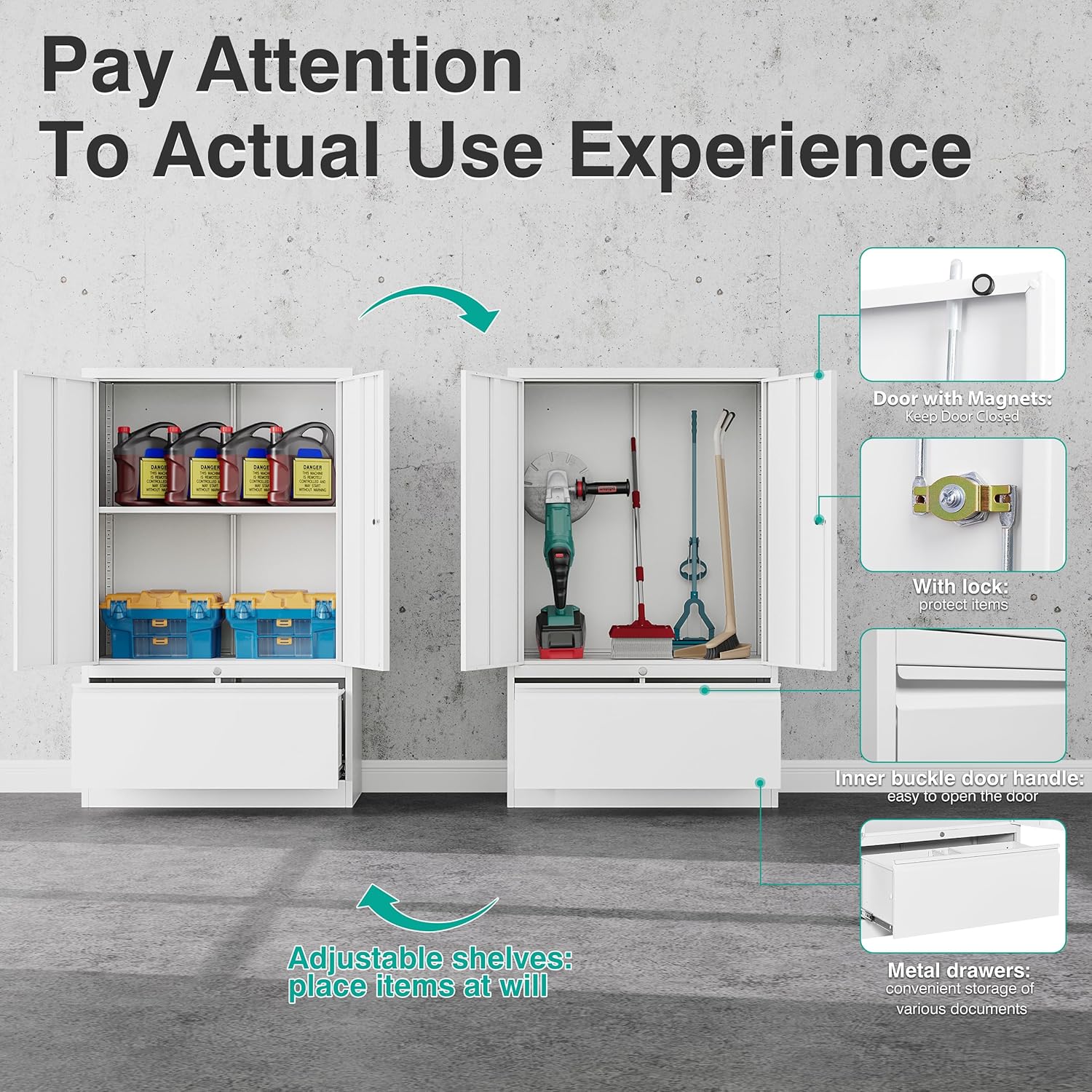 - ăLarge Capacityă : Storage cabinet with doors and shelves, 1 adjustable shelf to meet your different needs for placing items, shelf & door lock can highly protect items from temperature, dirt & dust, & equipped with a drawer , for letter/legal/A4 size documents