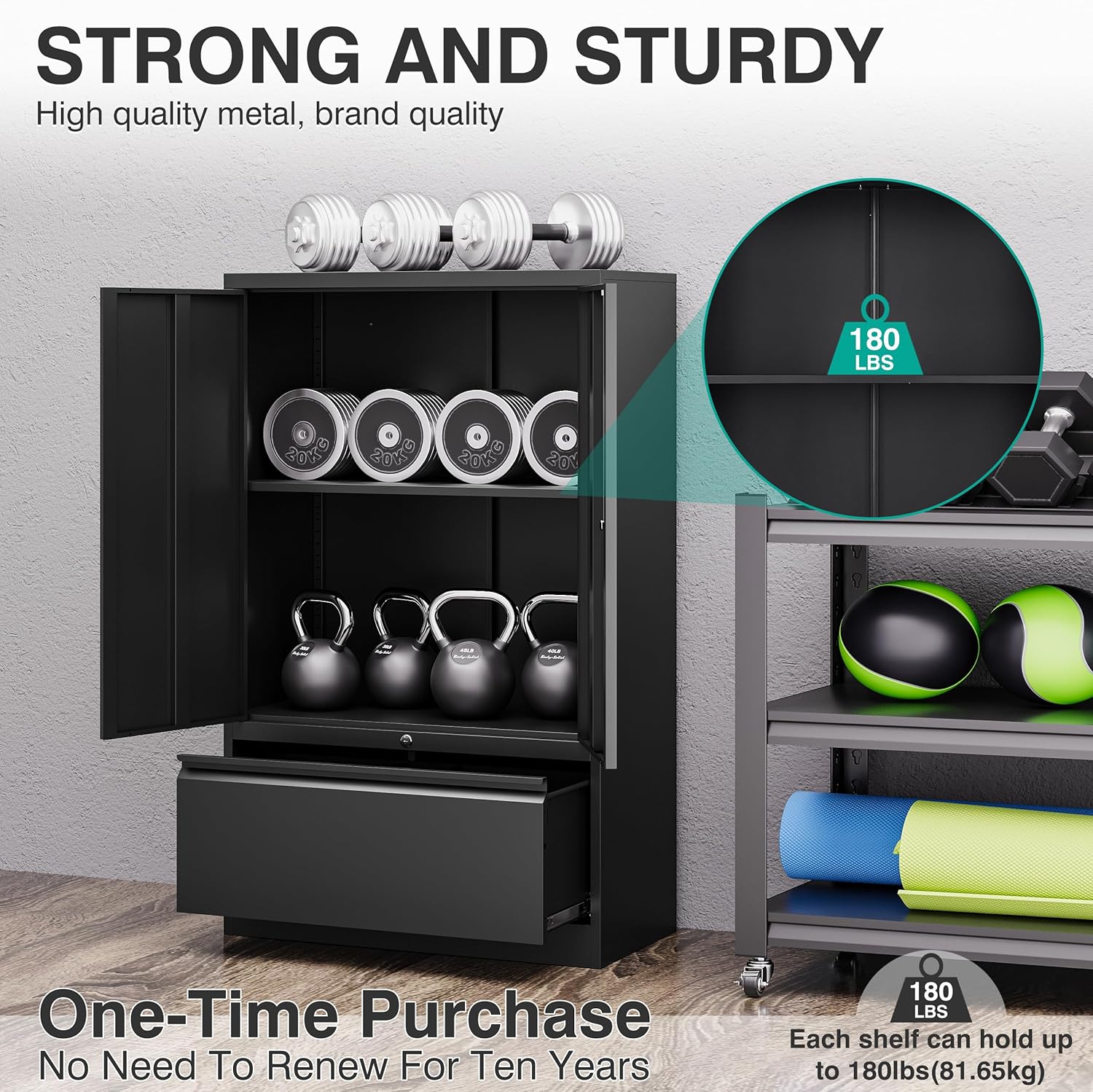 - ăHIGH QUALITY MATERIALă The metal file cabinet is integrally formed, using heavy-duty cold-rolled steel plate, the entire metal frame is thickened, more durable, each shelf has a carrying capacity of up to 180 pounds, sturdy & not easy to deform, use with confidence, the metal surface is environmentally friendly & harmless powder coating, easy to clean, prevent Scratch & rust