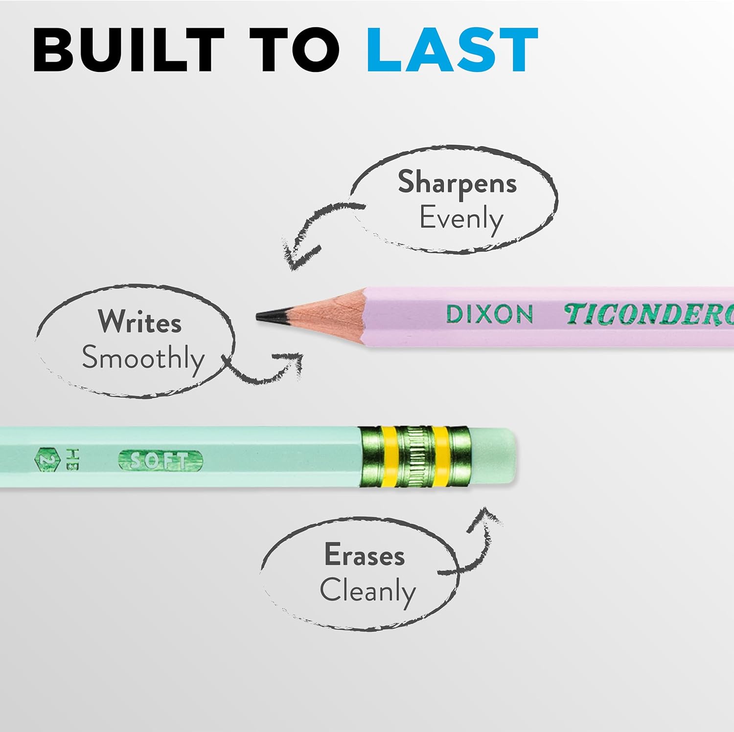 - Create beautiful artwork with Ticonderoga Pastel Pencils. Each pencil boasts a latex-free eraser for quick corrections.