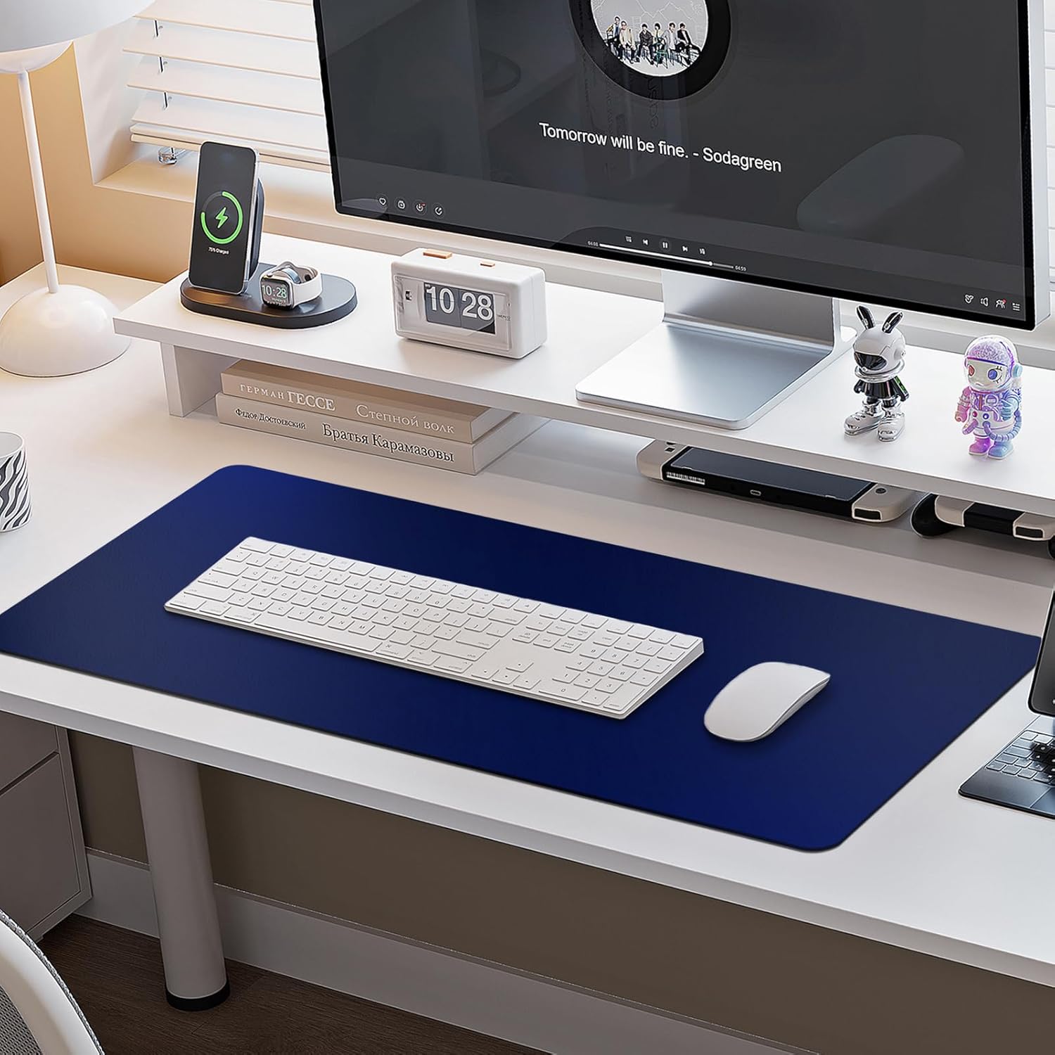 Boutilon Leather Desk Pad Protector,Non-Slip Mouse Pad,Laptop Desk Pad,Office Mouse Mat,Waterproof Leather Desk Blotter,Desk Writing Pad for Office and Home (M-Navy,30"x14")