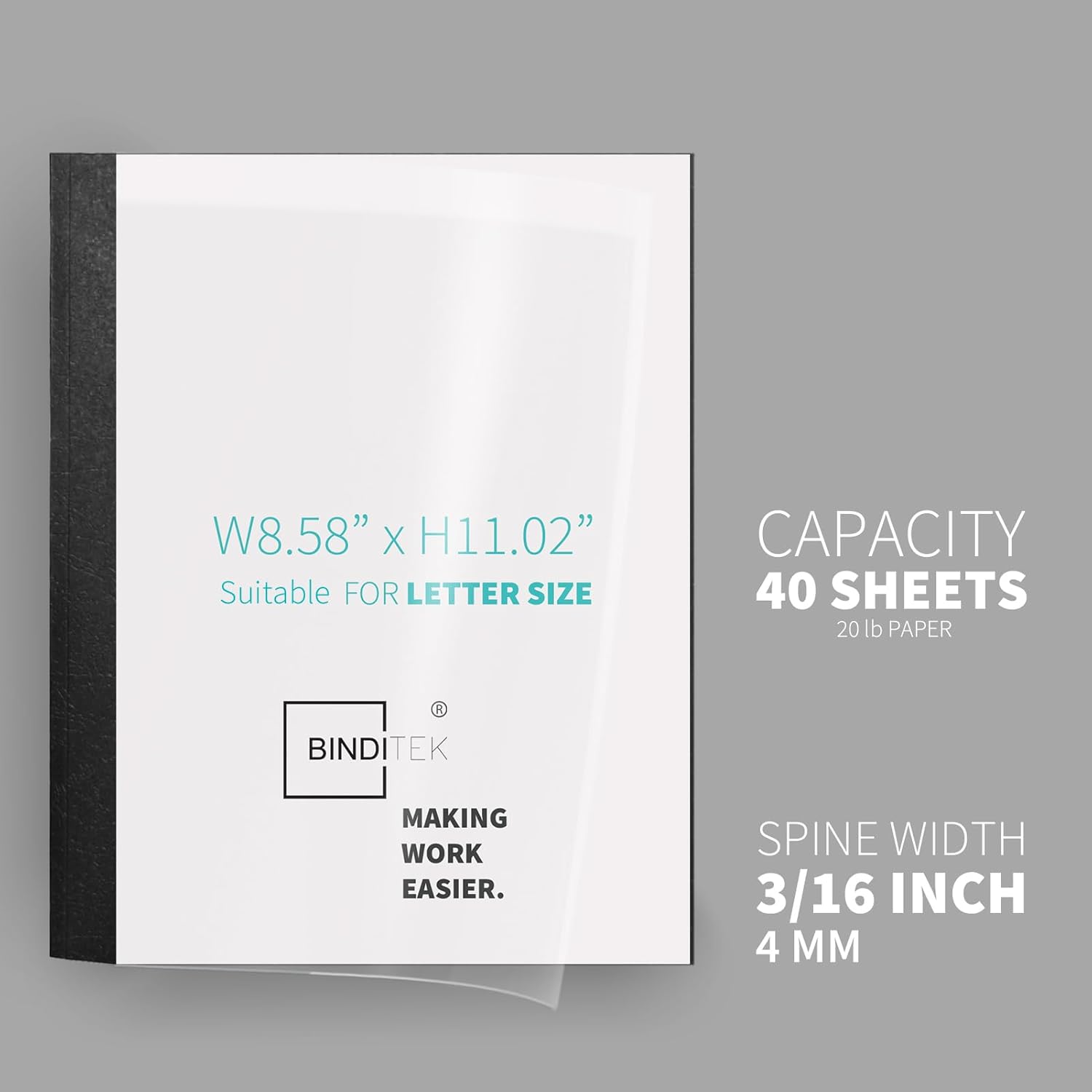 Binditek 20 Pack Thermal Binding Presentation Covers, 3/16 Inch Spine, Holds 40 Sheets, Ultra Clear Front Cover, Black Paper Back Cover, Letter Size, for Students and Coworkers