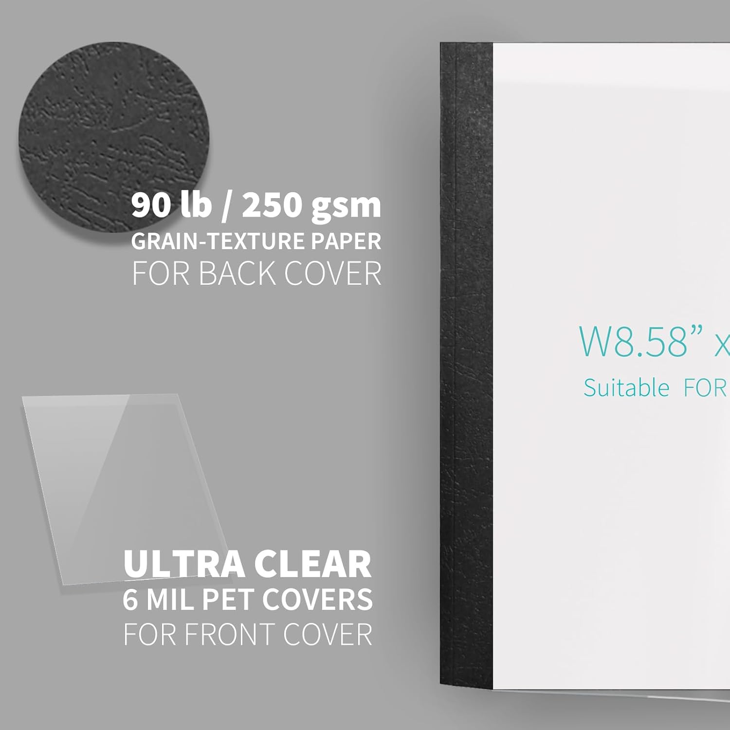 - Clear Front Cover: Crafted from 6 Mil Polyethylene Terephthalate (PET) material, these covers offer exceptional transparency compared to PVC. This enhanced clarity allows the top page to be displayed more vividly. They are non-toxic, tasteless, and entirely safe.