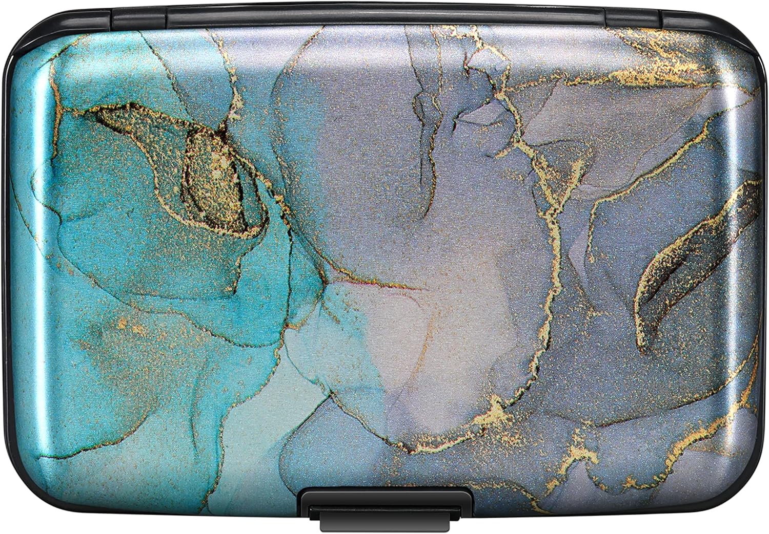 - This credit card holder is made of aluminum shells, ABS plastic frame and clasp closure, RFID-blocking will protect your card data from RFID scanners and readers.