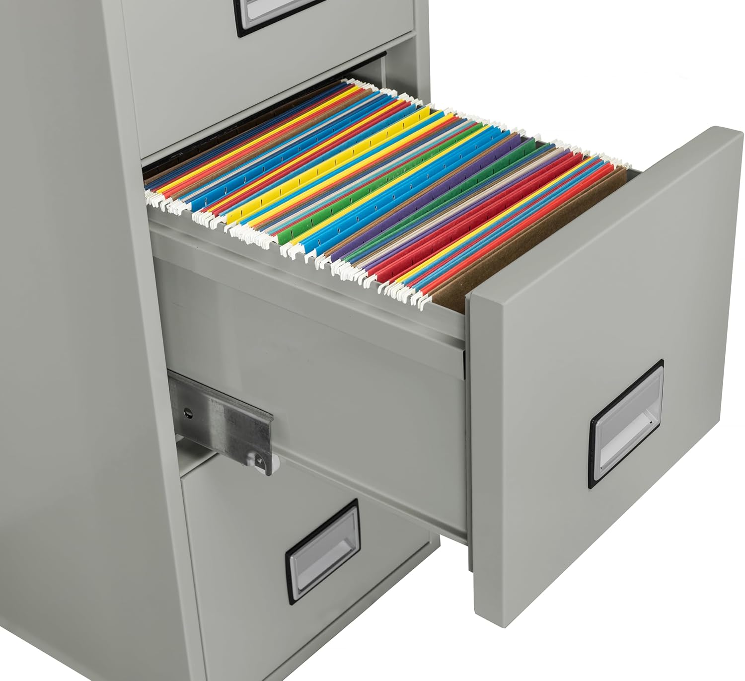 25 inch 4-Drawer Vertical Fireproof File Cabinet – Letter Size Filing – Key Lock – Water Resistant Seal – Fire and Impact Rated – Light Gray Finish – Model LTR4W25LG