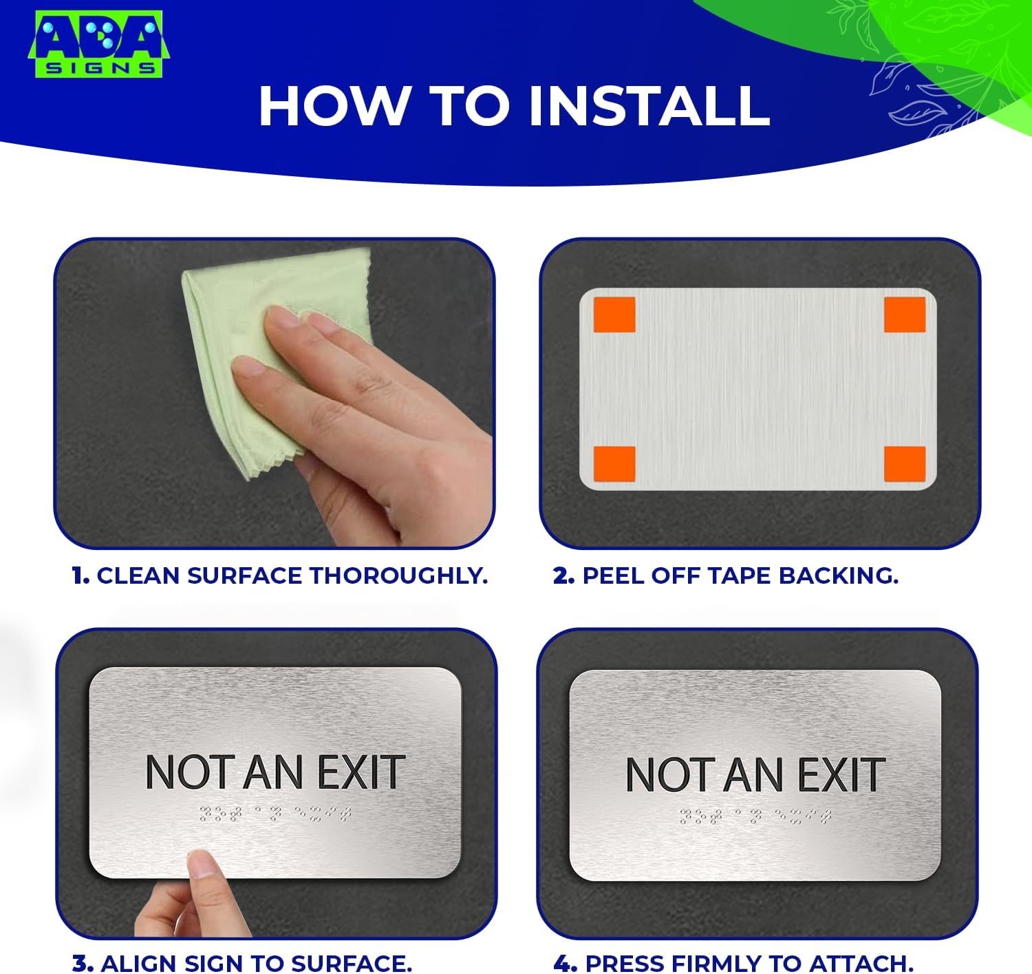 Not An Exit Sign for Business - Office Signs, Aluminum Brushed Silver, Tamper-Proof, Heavy Duty Mounting Tape, Easy Install, Office Décor, ADA Compliant, Grade 2 Braille (7” W x 4” H) ADASigns.org