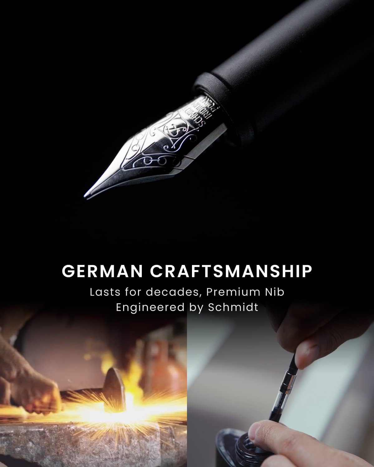 - Addictivve & Silky Writing Experience: Your creativity needs to flow uninterrupted. This 2-In-1 Set comes with extra rollerball pen grip. High-quality rollerball cartridge, and stainless steel fountain pen nib historical Germany pen company with over a century of experience in craftmanship excellence. Thanks to their exquisite inflow design, pure, unbroken lines of thought jump forth from the pen to paper without spills, spotting, or explosions.