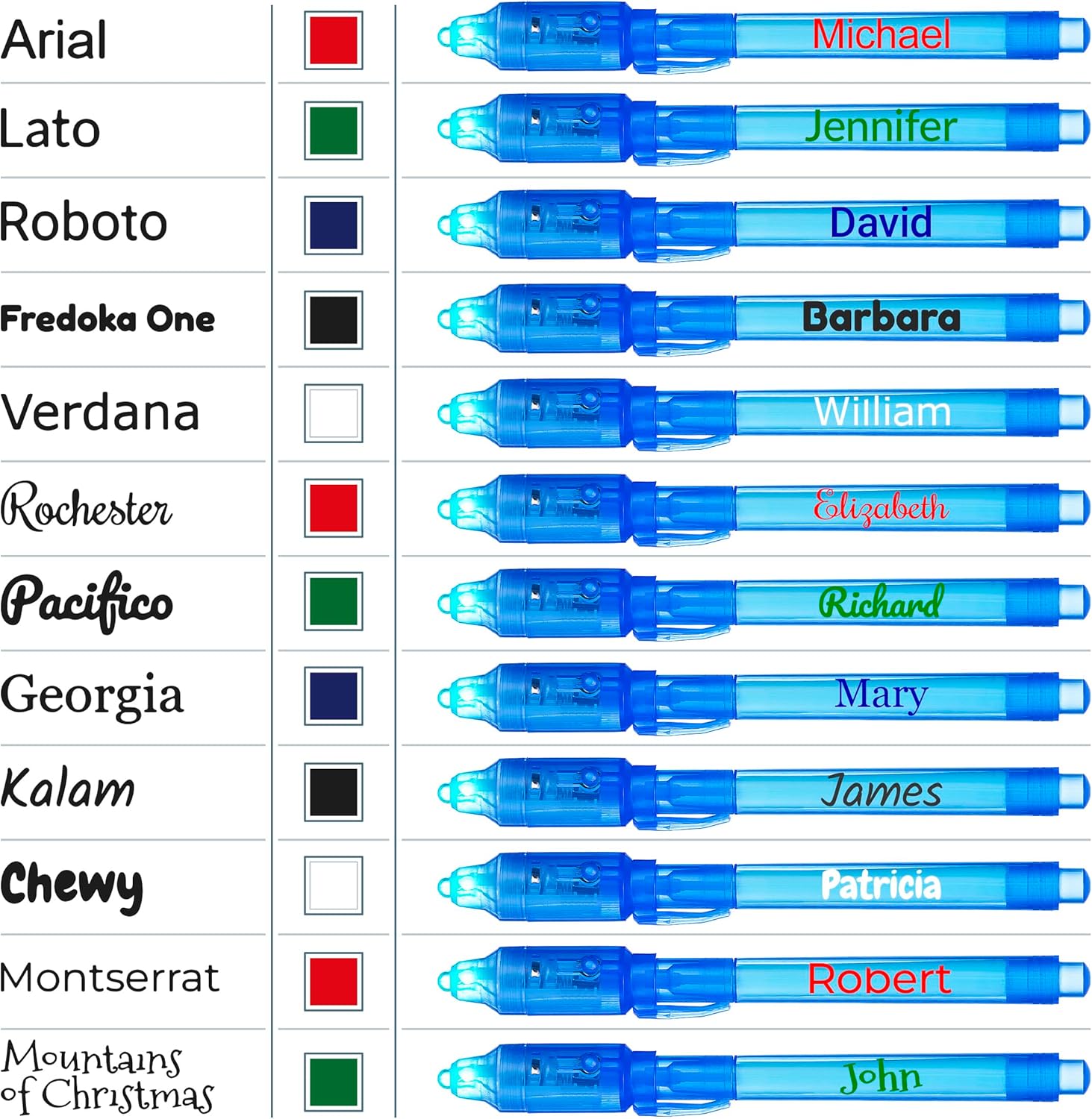 - GREAT GIFT FOR FUN PARTY FAVORS: These Personalized Invisible Spy Pens come in a pack of 24 Blue Pens to make the activity more exciting and fun.The color of the light is blue and it will display the words written in clear ink for all pens. Batteries are included and installed. Parents can buy these Spy Pens for their kidβs party at home. Schools, Teachers can buy it for students for a school Activity. Add it for any surprise gift bag or as Stock Stuffers.