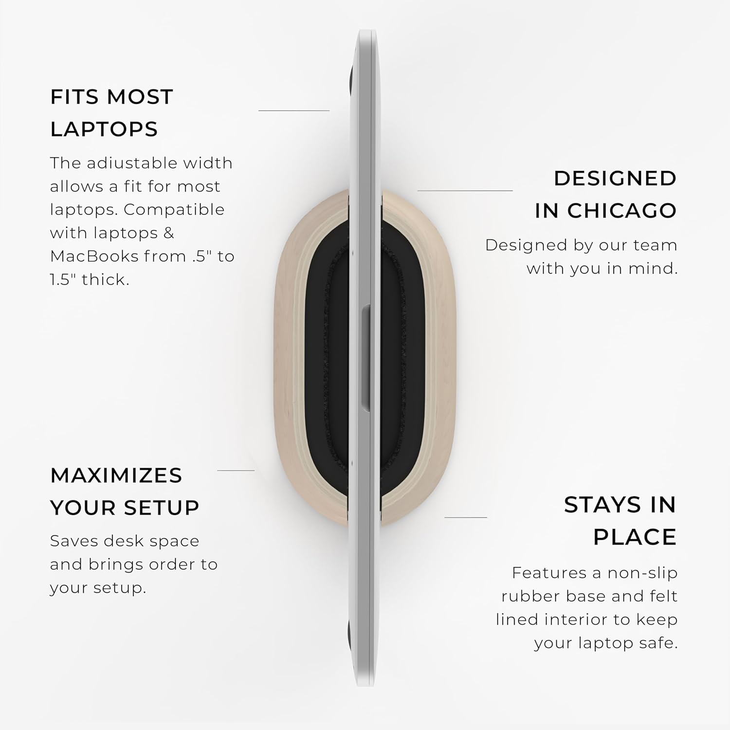 - Sleek and minimalist design is both functional and space-saving while adding a unique look and feel to your desk setup. The felt interior protects your MacBook stand and works with cases and covers. The textured exterior is made from wood with a black walnut veneer.