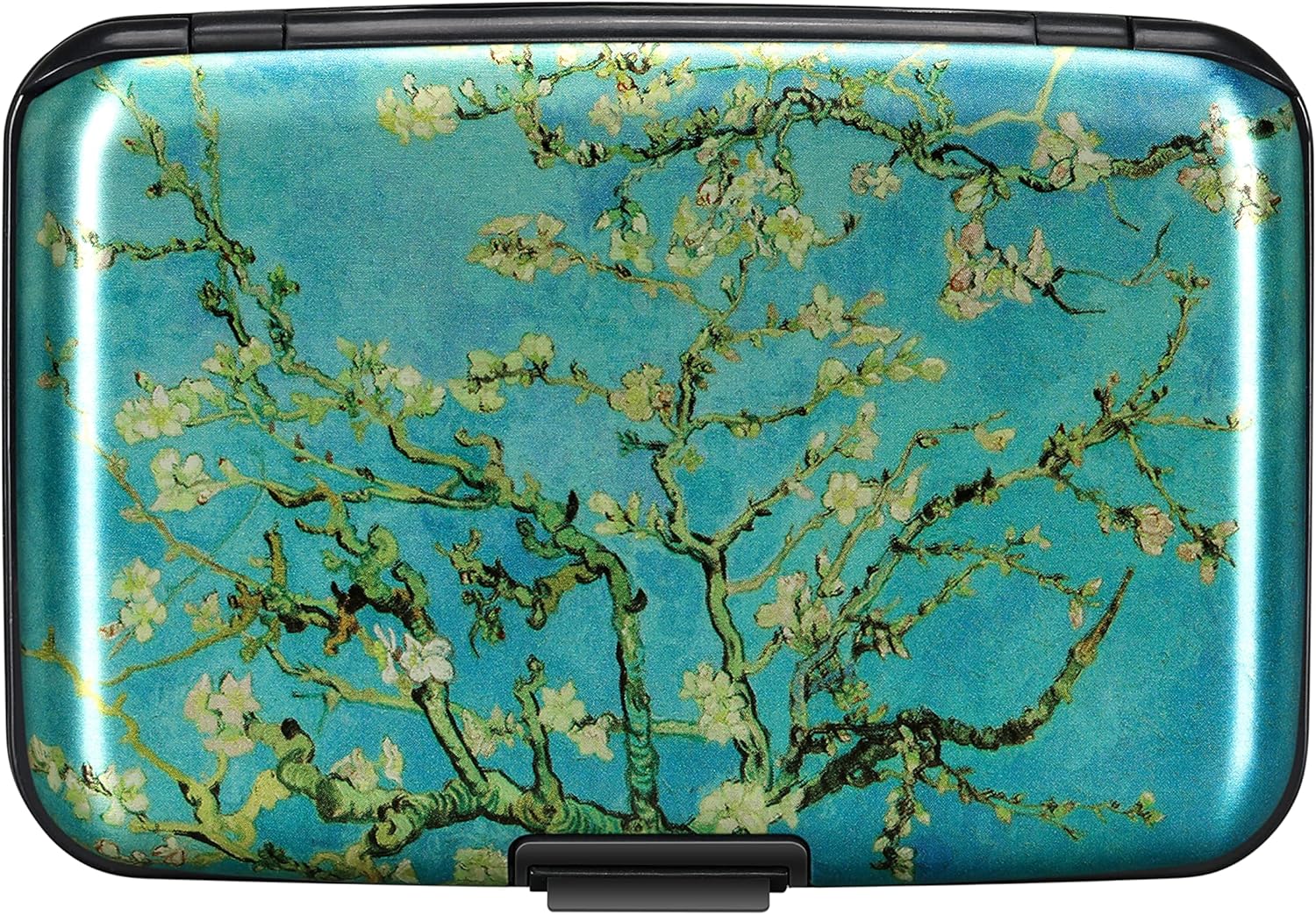 ELFISH Mini RFID Aluminum Wallet Credit Cards Holder Business Card Case Metal ID Case for Men Women(Apricot flower
